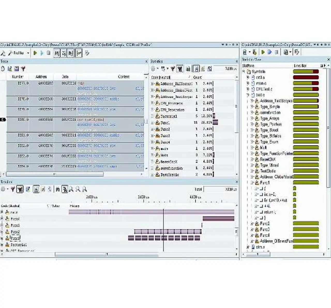 Unmittelbar nach Starten des Trace erhält man den kompletten Programm- und Datenfluss, vergleichbar dem Trace über Nexus (Bild 5).