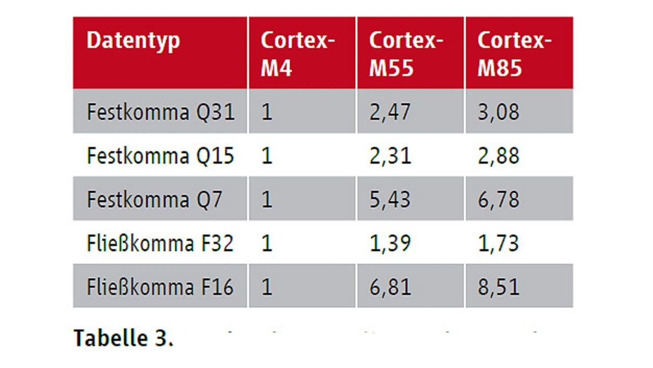 Die Helium-Vektorbefehle verbessern sogar die Gesamtenergieeffizienz, da weniger CPU-Befehle für einen Berechnungsalgorithmus ausgeführt werden. Tragbare Geräte wie Fitness-Tracker oder intelligente Uhren profitieren von den Innovationen in den Cortex-M55- oder Cortex-M85- Prozessoren