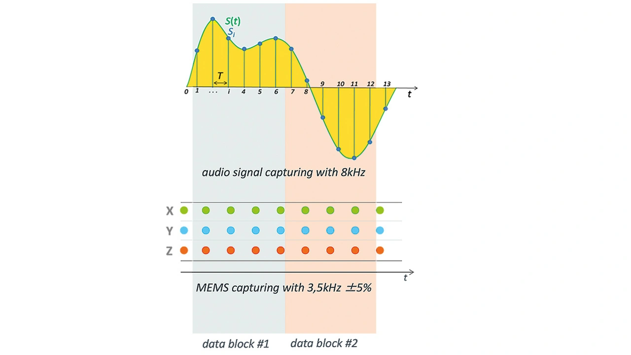 Das SDS-Framework ist so konzipiert, dass es auch Sensorfusion unterstützt, bei der die Daten mehrerer Quellen kombiniert werden. So könnte es beispielsweise sinnvoll sein, ein Audiosignal mit den Informationen eines MEMS-Sensors zu kombinieren, um eine bessere Vorhersage von Maschinenausfällen zu bekommen. Bei der Kombination von Daten aus mehreren Quellen sollten jedoch die Toleranzen der unabhängigen Taktquellen berücksichtigt werden (Bild 6). Das SDS-Framework enthält Mechanismen, um solche Situationen zu bewältigen, und stellt unabhängige Taktinformationen für mehrere Datenströme bereit.