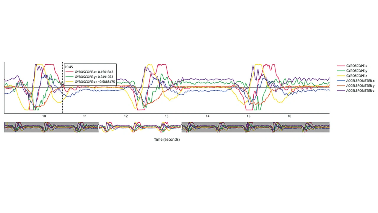 Mit der Datensegmentierungsfunktion können aufgezeichnete Ereignisse, die im Datenvisualisierungseditor angezeigt werden, lokalisiert, ausgeschnitten und gelabelt werden, um sie als Trainings- oder Testdaten zu verwenden (Bild 8). TDK Qeexo AutoML führt den Entwickler durch den Trainingsprozess und bietet verschiedene automatische und manuelle Optionen für das Klassifikationsintervall und die -länge, Modellalgorithmen und Optionen. Das Cloud-basierte Training läuft dann vollständig automatisiert ab und generiert eine ML-Laufzeitbibliothek, die für Cortex-M-Prozessoren optimiert ist.