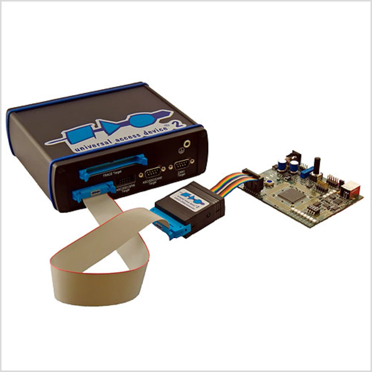 Ein weiterer Grund für die Suche nach neuen Ansätzen ist das Problem mit der zu kurzen Verbindungsleitung zwischen Mikrocontroller-Target und Debug-Tool, das meist im Feldeinsatz auftritt. Bei modernen 32-bit-Mikrocontrollern sind JTAG-Taktfrequenzen bis 100 MHz möglich. Damit das Signalkabel nicht zur Antenne wird, ist spätestens nach 25 bis 30 cm eine Signalkonditionierung erforderlich. Dies kann – wie mit dem JTAG-Extender des Universal Access Device 2+ (UAD2+) von pls – mit einem kleinen Konverter dicht am Target und nachfolgender Weiterleitung des aufbereiteten Signals über differenzielle Signalleitungen erfolgen (Bild 1). In jedem Fall ist bei „klassischem“ JTAG eine erste, zur Debug-Lösung gehörende Hardware dicht am Target erforderlich. So ergibt sich – unabhängig vom Hersteller – das bekannte Bild der Debug-Geräte-Lösungen mit dem sehr kurzen Flachbandkabel direkt am Gehäuse.