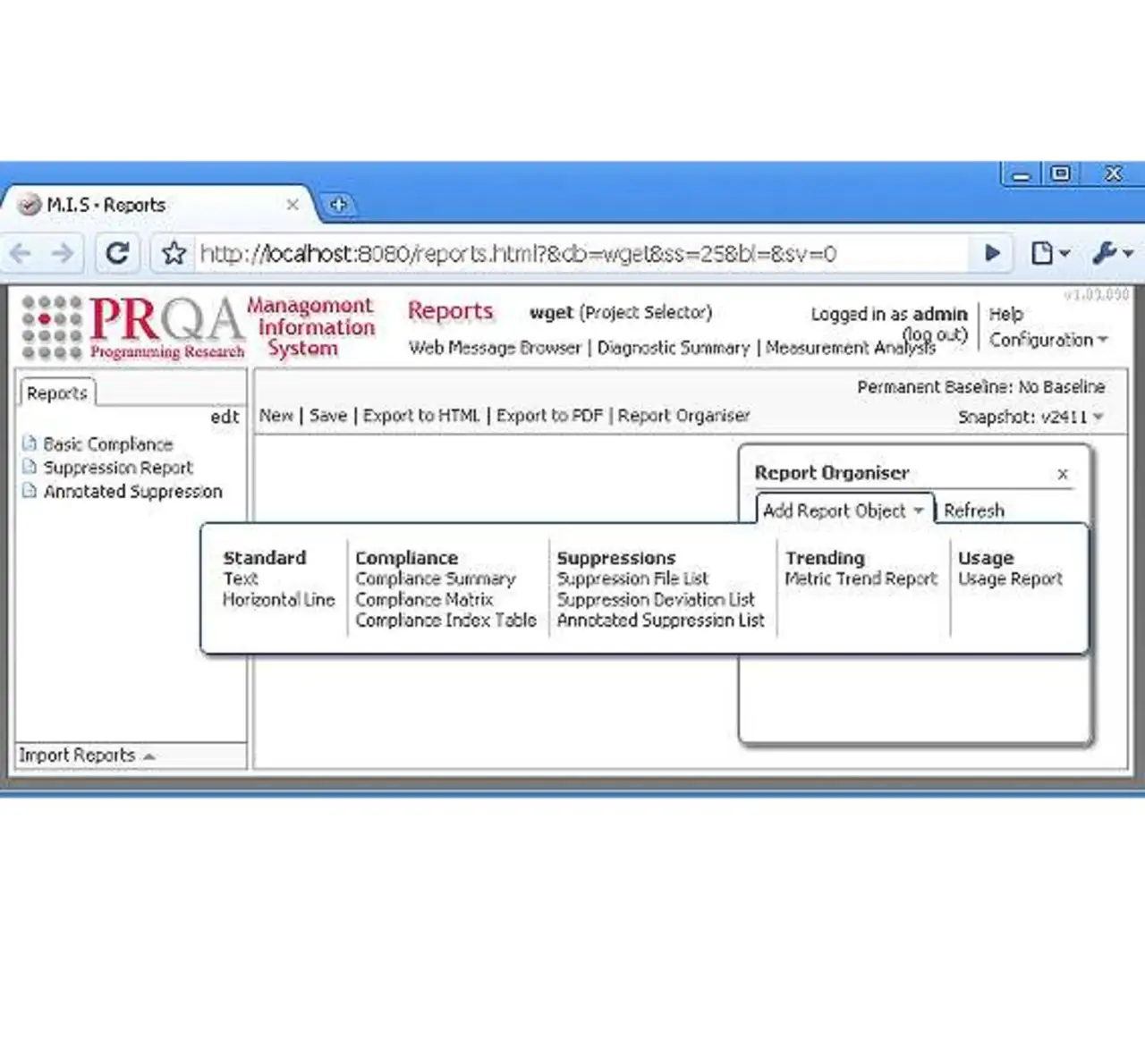 Für das leitende Management bietet MIS den Vorteil, dass keine gesonderten Werkzeuge installiert werden müssen. Zugleich kann es aber von der gesamten Bandbreite der MIS-Darstellungen und -Daten profitieren (Bild 5). Damit erhält das gehobene Management die gleichen Code-Ansichten samt Analysedaten, die auch die Entwickler haben, die gleichen Zusammenfassungen der Projekt-Normkonformität (aktuelle und vorhergehende Versionen) und auch die gleichen Listen der für die Einhaltung der Compliance eingegebenen Unterdrückungsanweisungen sowie die gleichen projektübergreifenden Trendanalysen und Berichte. MIS erfüllt die unterschiedlichsten Anforderungen auf den verschiedenen organisatorischen Ebenen und stellt wichtige Daten zur Messung und Überwachung der Qualität zur Verfügung. MIS liefert für Anwender außerhalb der unmittelbaren Entwicklungsumgebung eine breite Palette an Qualitätsinformationen, und liefert damit wertvolle Informationen für einen Personenkreis, der bisher nicht gut mit Daten versorgt wurde.