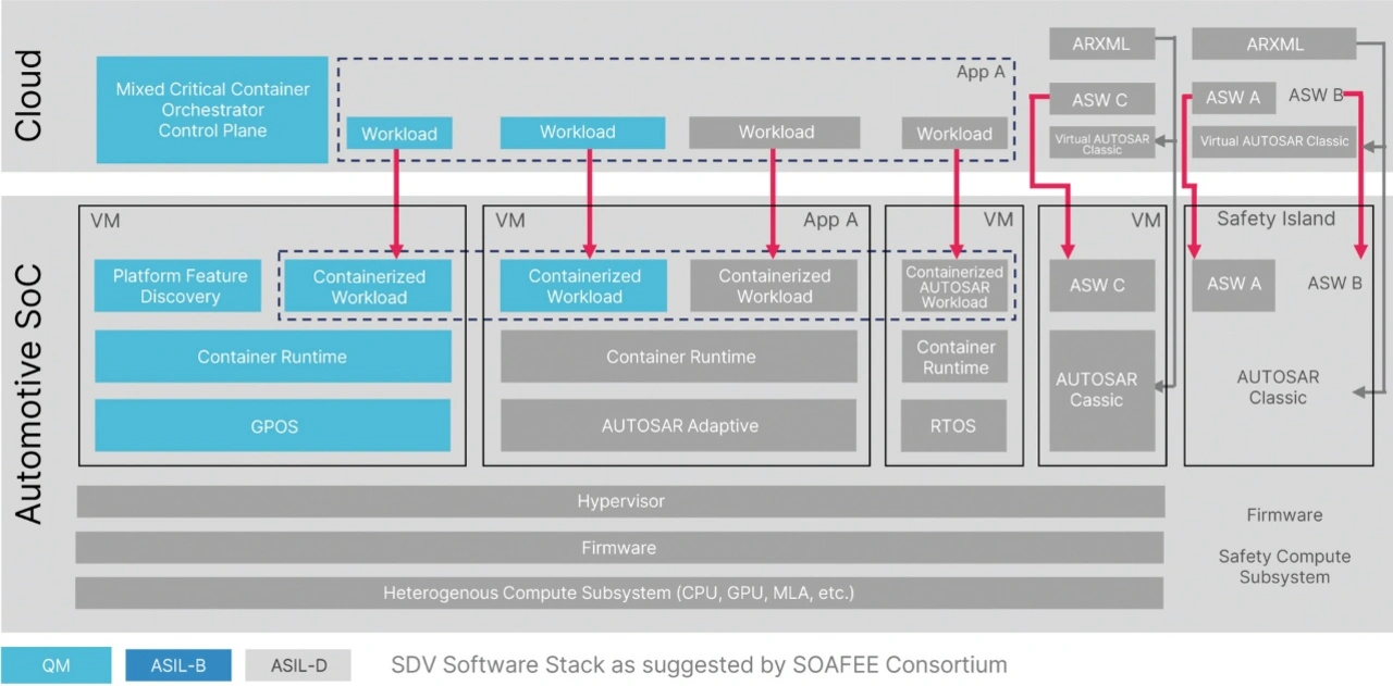 Auf Seite des SDV-Softwarestacks erleben wir einen fast noch stärkeren Paradigmenwechsel als bei der Hardware. Es haben sich mehrere Konsortien gebildet, um dafür eine Standardisierung zu erarbeiten. Laut einer Studie der Analysefirma WardsAuto hat das von Arm gegründete SOAFEE-Konsortium die besten Aussichten, dabei erfolgreich zu sein [2].