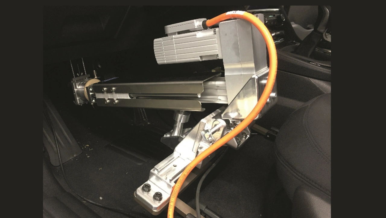 Ein weiterer Verwendungszweck ist der Einsatz bei Kleinserien oder Testgeräten. Ein Beispiel hierfür ist ein Pedalmessgerät, das ARRK für die Automobilindustrie entwickelt hat (Bild 2). Das Ziel bei dieser Testvorrichtung ist die kombinierte Messung und Analyse von Pedalweg und -kraft zum Beispiel für Brems-, Kupplungs- oder Gaspedale. Ein Modul übernimmt dabei die Aufgabe, die Werte beider Sensoren zu verwalten, in digitale Signale zu übersetzen und diese zur weiteren Verarbeitung zu übermitteln. Ein zweites Modul ist Teil der Fernbedienung, um die Anlage aus der Ferne zu steuern. Der Kunde profitiert hier von der Modularität des Systems.