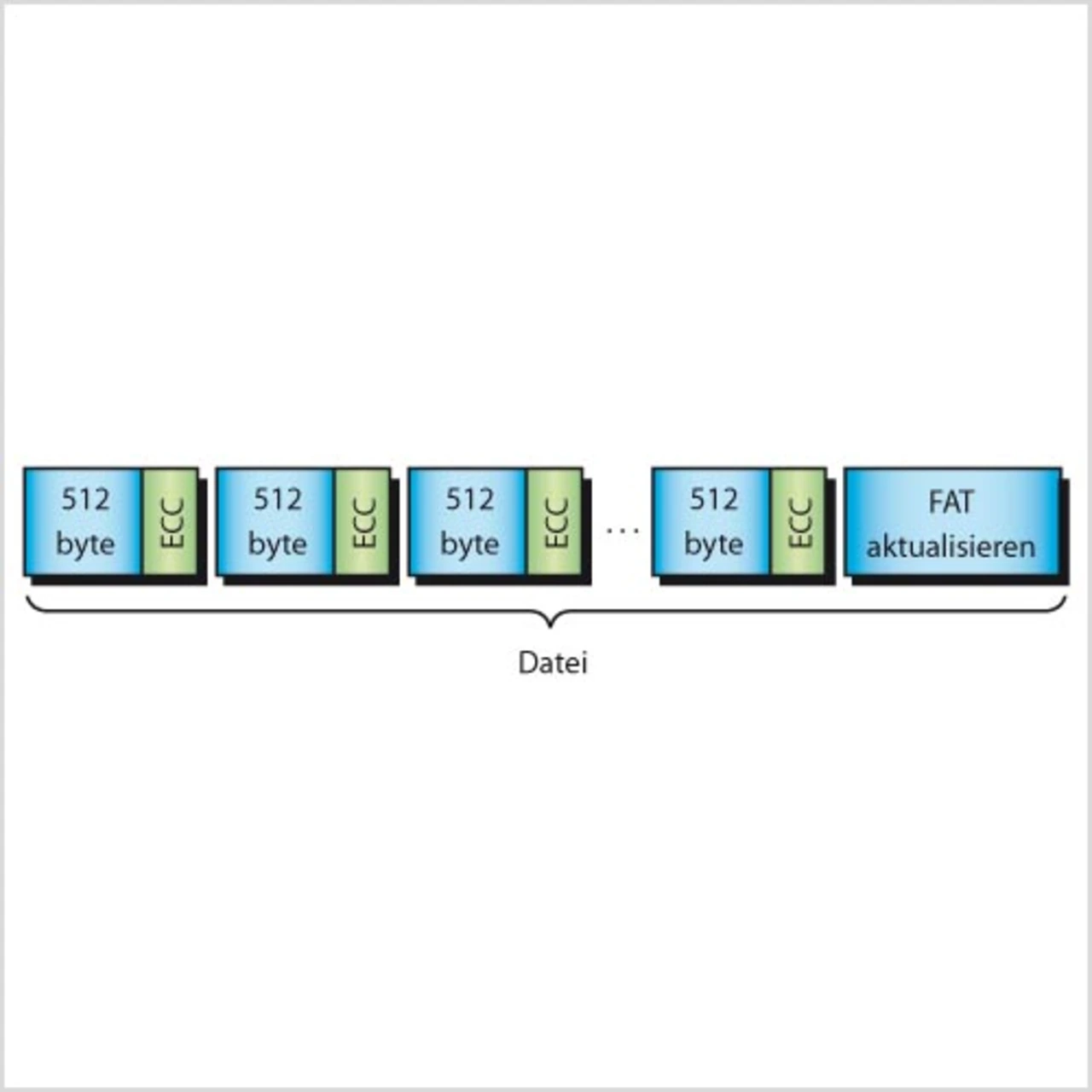 Bild 1 zeigt den Zusammenhang zwischen Sektoren und Dateien. Tritt während des Schreibens einer großen Datei eine Stromstörung auf, kann die Datei abgeschnitten werden. Wenn dies an einer Sektorengrenze erfolgt, dann bleibt der Speicher stabil. In diesem Szenario können zwar Datenschäden auftreten, doch es werden keine Reserven verbraucht.