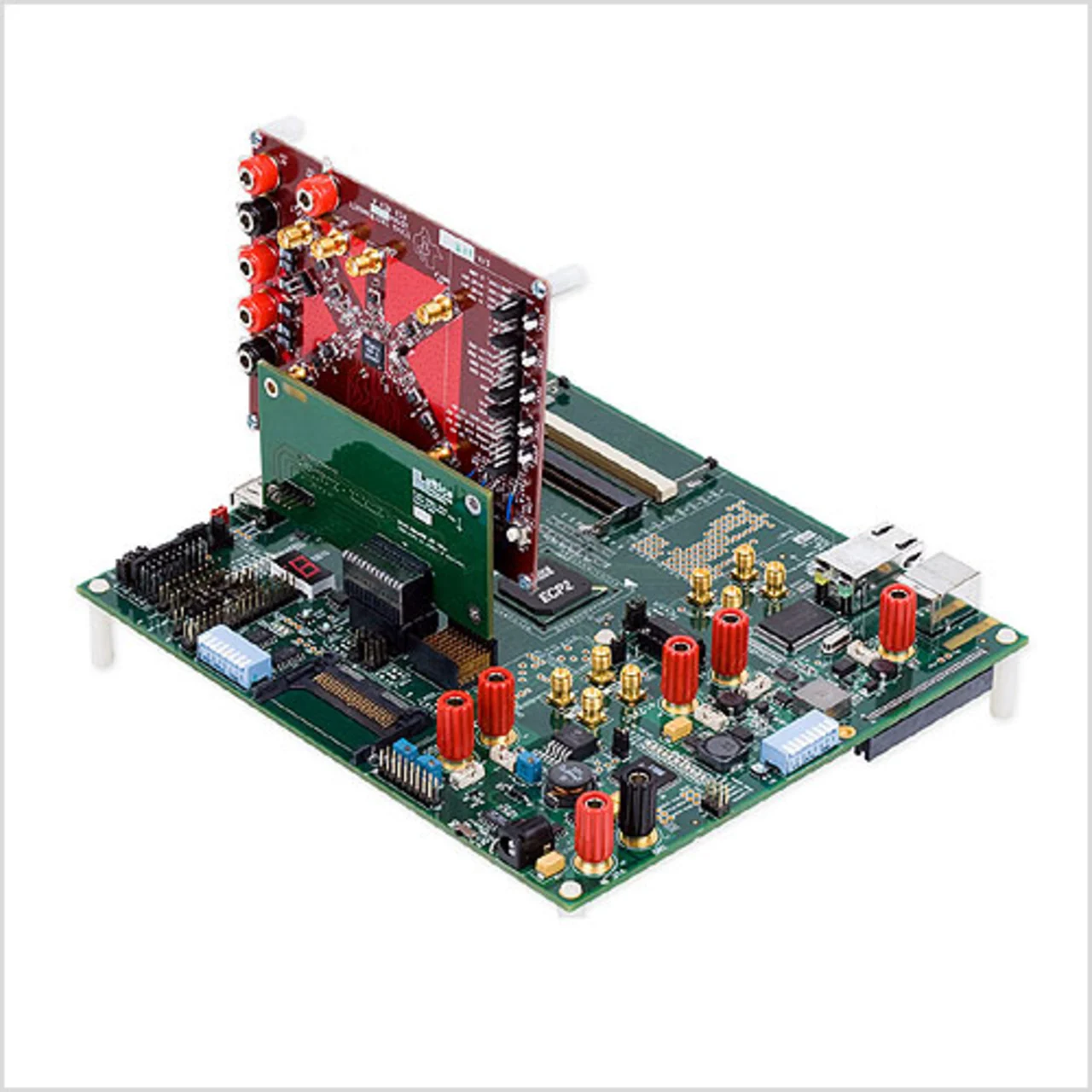 Um die Verifikation der Designs zu erleichtern, ist das neue Referenzdesign auf einer von Lattice entworfenen Interfacekarte („LatticeECP advanced evaluation board“) untergebracht, die auf ein existierendes Evaluation Board (ADS6425EVM) von Texas Instruments gesteckt werden kann (Bild 2). Mit einer solchen Kombination haben die Entwickler ein sofort lauffähiges Gesamtsystem in der Hand, von dem sie eigene Lösungen ableiten können. Die ADS 6000-Familie besteht aus zwei- und vierkanaligen Konvertern mit Datenraten von 65, 80, 105 und 125 MSamples/ s. Die Lattice-FPGAs der ECP2-Serie sind in Varianten von 6000 bis 95 000 Logikeinheiten verfügbar, haben einen schnellen DSP-Block, ein DDR2-Speicherinterface mit bis zu 533 Mbit/s sowie Embedded-RAM von 1,2 bis 5,3 Mbit. Das Referenzdesign nutzt etwa 5 % der FPGA-Logik für den Transfer der A/D-Daten auf einen seriellen Bus.