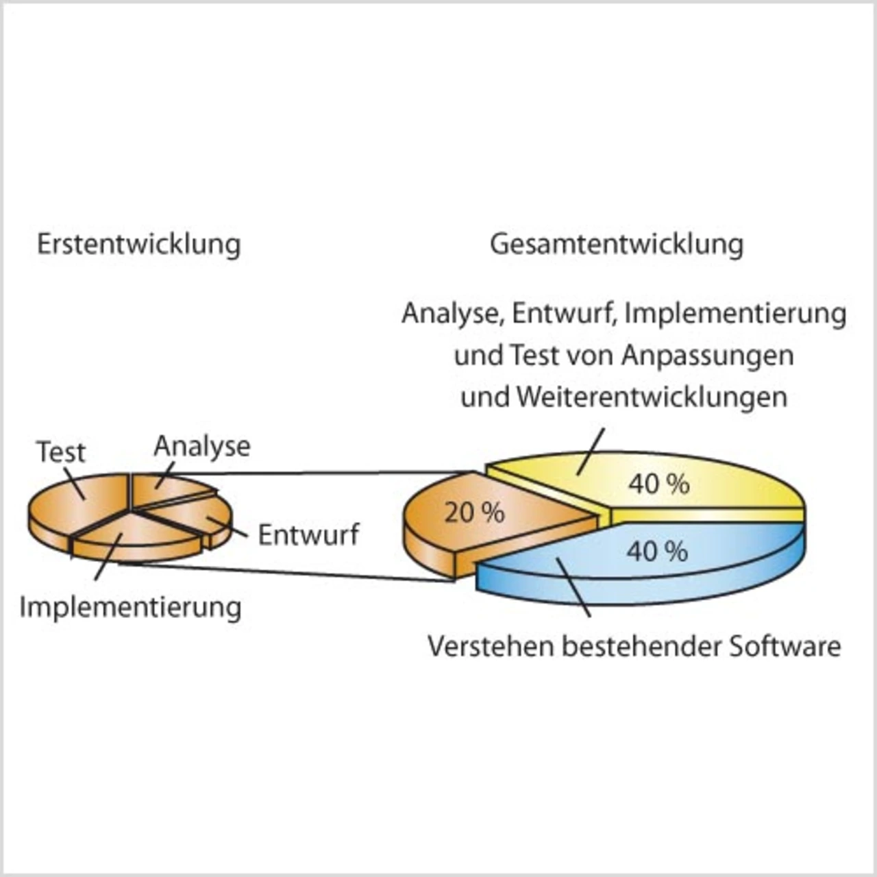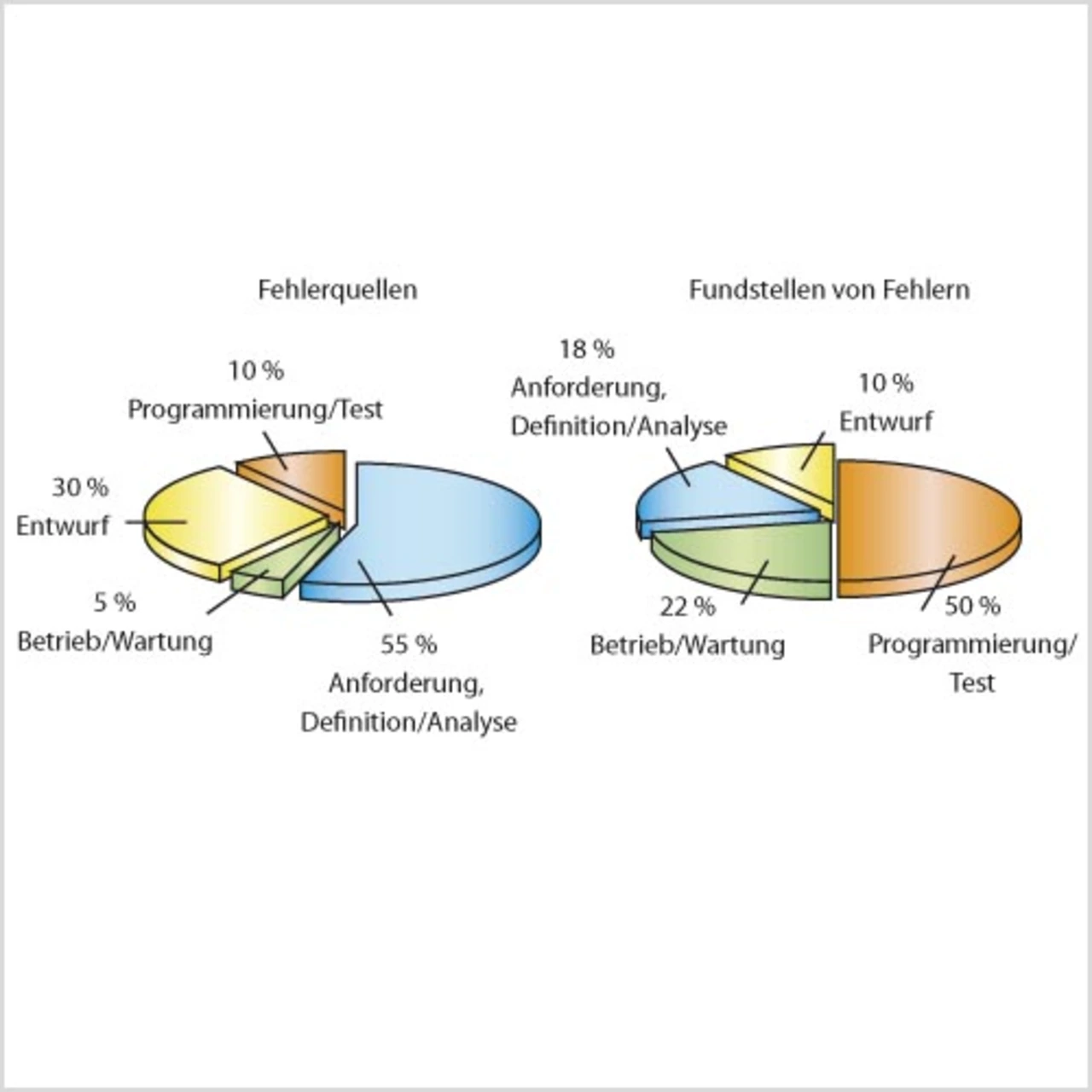 Doch auch ein von einem weißen Blatt Papier ausgehender Projektstart ist keine Gewähr dafür, dass eine Software klar und übersichtlich wird. Die häufigste Ursache dafür, warum Software nicht besser oder besser wartbar ist, als sie ist, liegt am Mangel von Zeit. Zeit für den Entwurf, Zeit für die Verifikation der Anforderungen, Zeit für das Testen. Schon in der Planungsphase lauern gravierende Stolpersteine. Denn eine überstürzte Planung kann dazu führen, dass die Anforderungen nicht vollständig das beschreiben, was die Software später tun soll. Statt langwierige Rückfragen an Kunden oder Auftraggeber durchzuführen, stellen die Programmierer dann an unklaren Stellen ihre eigenen Vermutungen an und implementieren das, was ihnen plausibel erscheint. Deshalb werden viele Fehler erst sehr spät gefunden, obwohl die Ursachen schon in der Anfangsphase des Projekts liegen (Bild 2).