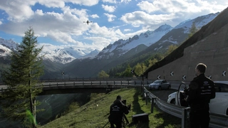 Der Firma Microdrones ist es gelungen einen 5 kg leichten Quadrocopter über das Gotthardmassiv zu steuern. Mittels GPS musste das Luftfahrzeug seinen Weg selbständig finden.