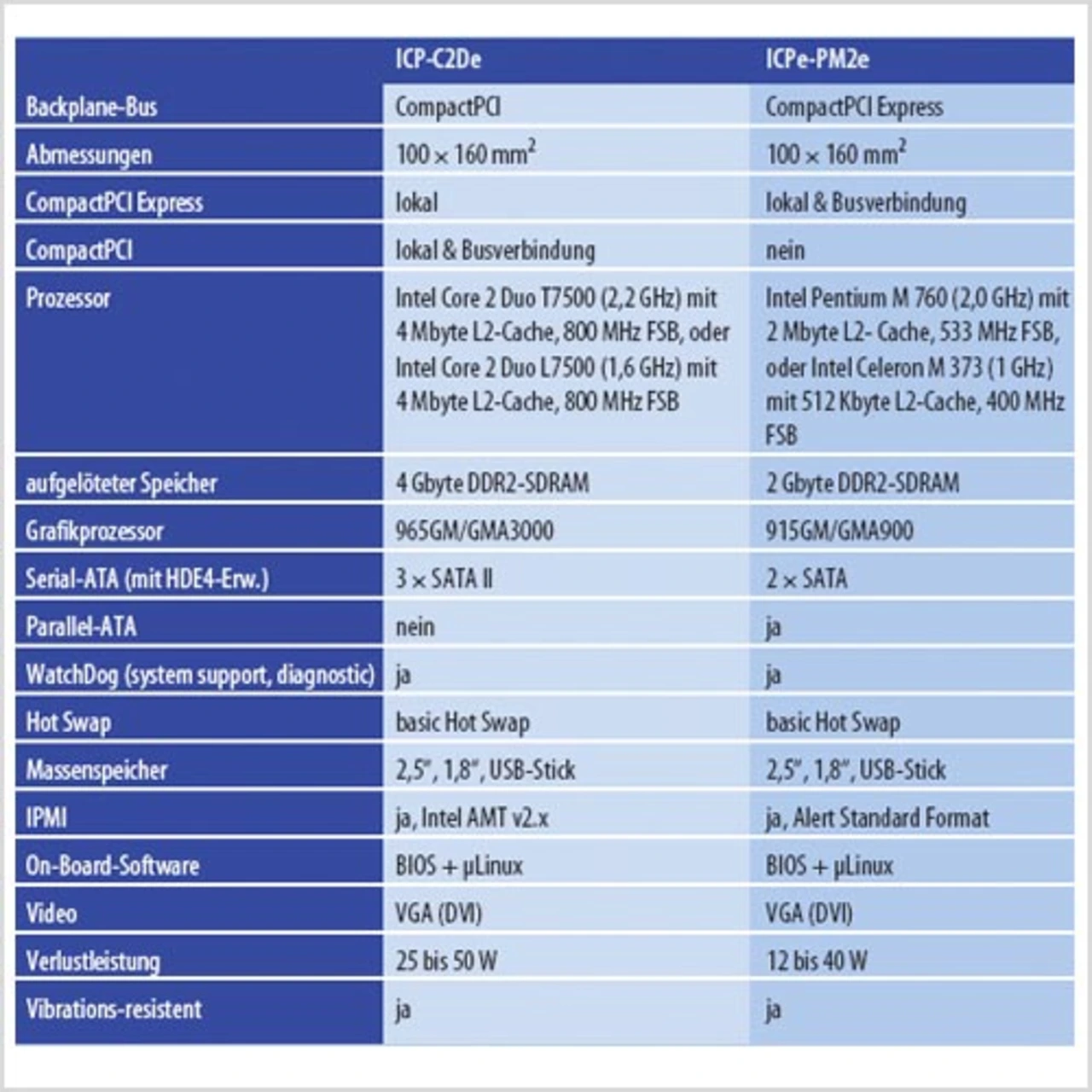 Das CompactPCI-Board ICP-C2De kann mit zwei Typen des Core-2-Duo- Prozessors bestückt werden: