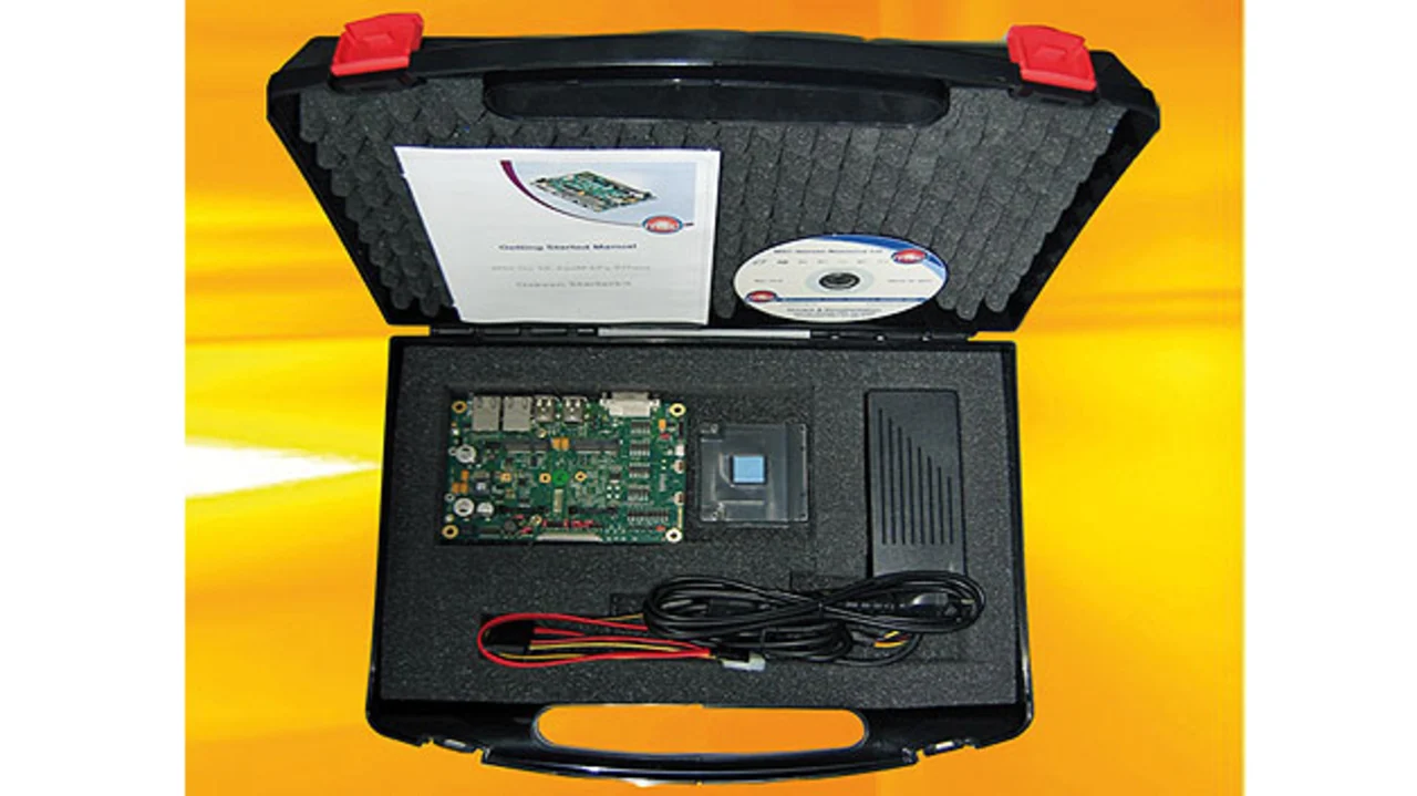 Qseven ist ein Modulformat, das sowohl ARM- als auch x86-Prozessoren zulässt. Für den schnellen Einstieg in die ARM-Welt bietet MSC ein Qseven-Starter-Kit Q7-SK-IMX6 mit i.MX6-Controller von Freescale an (Bild 4). Das Kit umfasst ein kompaktes Qseven-Basis-Board mit Stromversorgung, einen Kühler, eine SD-Karte mit bootfähigem Betriebssystem und eine Ressourcen-CD mit Treibern und Dokumentation. Ein zusätzlich erhältliches LC-Display kann mit dem passenden Kabelsatz unmittelbar angeschlossen werden.