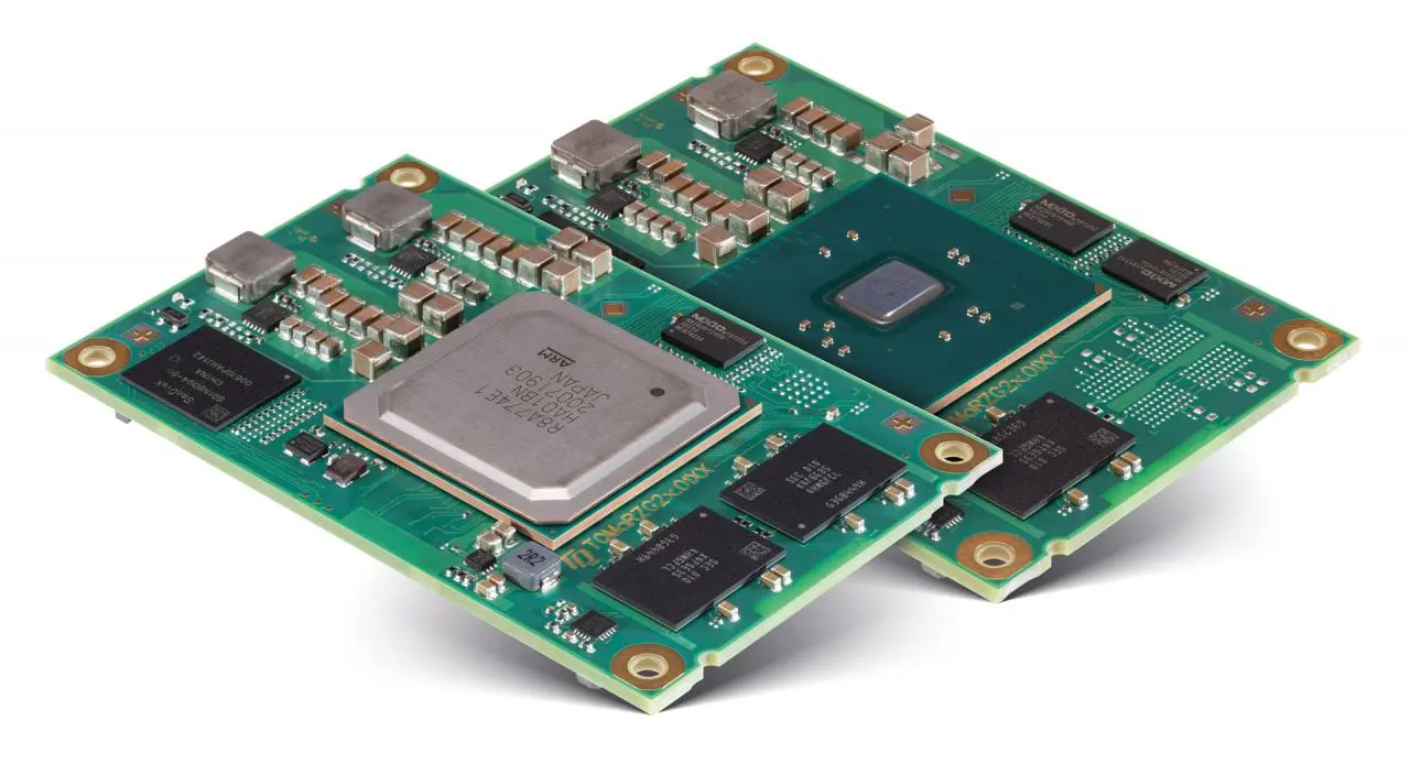 Bildverarbeitung und KI-Methoden verlangen den Entwicklern aber deutlich mehr ab als klassische Touch-HMIs. Embedded-Anbieter wie TQ bieten hier Unterstützung an, zum Beispiel mit vorintegrierten Modulen, die Pin-kompatibel unterschiedlichste Verarbeitungsleistungen liefern. So kann man nicht nur die benötigte Rechenleistung sehr gut skalieren, der Modul-Anwender kann auch recht einfach sein eigenes Produktportfolio pflegen: Von einem Basismodell lassen sich leicht günstigere Varianten ableiten und außerdem hochwertige Versionen erstellen. Durch Pin-Kompatibilität lassen sich die Module passend zum Leistungsbedarf auswählen. Erfolgte bislang die Skalierung hauptsächlich über die Taktfrequenz der Prozessoren, was nur einen recht geringen Leistungsunterschied ergibt, setzt die Branche aktuell auf die Variation von Anzahl und Art der Prozessor-Cores. So gibt es beispielsweise von TQ-Embedded die steckkompatiblen TQMaRZG2x-Module (Bild) in Varianten mit Dual-Cortex A57, mit Dual-Cortex A57 in Kombination mit Quad-Cortex A53 oder in der Top-Variante mit Quad-Cortex A57 in Kombination mit Quad-Cortex A53. Das schafft Flexibilität und erleichtert dem Entwickler seine Aufgabe, damit er sich auf die Optimierung seines Produkts und des Bedienkonzepts besser fokussieren kann.