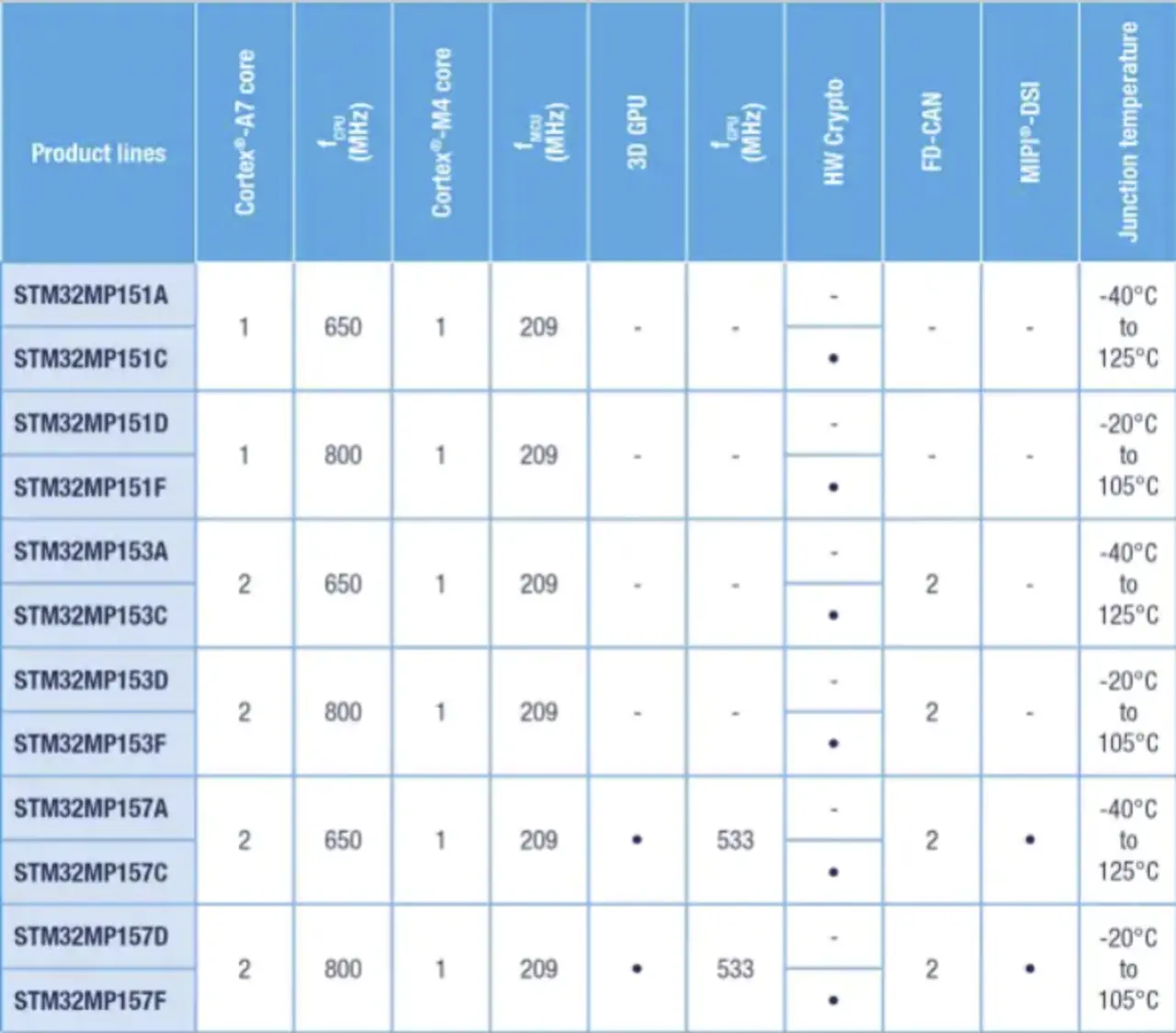 Völlig zu Recht gehört die »STM32MP1«-Familie von STMicroelectronics zu den meistverkauften Prozessorfamilien im Low-Power-Embedded-Markt. Sie verbindet einen Arm-Cortex-M4-Microcontroller mit 209 MHz mit einem oder zwei Cortex-A7-Mikroprozessoren mit bis zu 800 MHz Taktfrequenz. Zudem sind ein Vivante-3D-Grafikprozessor (GPU) sowie ein Sicherheits- beziehungsweise Krypto-Modul implementiert. Hierbei steht dem Entwickler mit dem »STM32Cube« eines der größten Ökosysteme am Markt zur Verfügung. Außerdem besteht für die ein beziehungsweise zwei A7-Applikationsprozessoren eine Yocto-Projekt-Unterstützung für Linux. Hiermit kann sich ein Entwickler mit geringem Aufwand und in kurzer Zeit mit auf dem Markt verfügbaren Applikationen ein spezifisches System konfigurieren. Weiter erleichtert wird das Entwickeln mit einem schlüsselfertigen Design-Kit mit verschiedenen Schnittstellen und Treibern auf einem Träger-Entwicklungsboard.