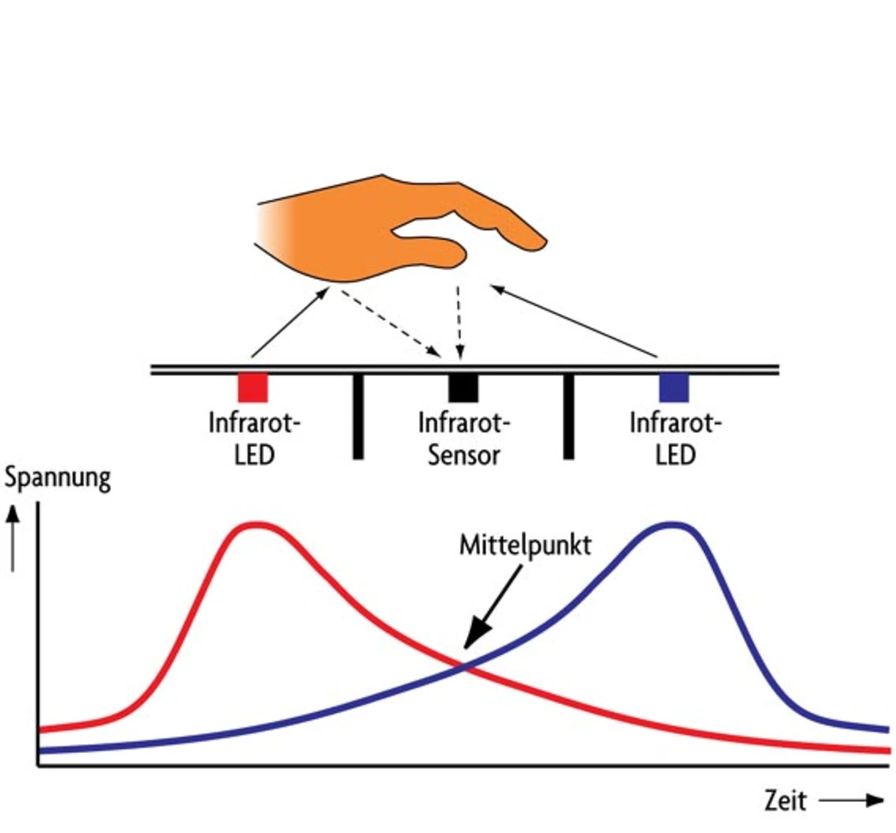 Es sieht magisch aus und doch geht alles mit rechten Dingen zu. Ein Infrarot-Sensor erkennt verschiedene Zeigegesten, die der Bediener einfach in der Luft über einer Anordnung von Infrarot-LEDs ausführt. Die Gesten werden in einem Abstand von bis zu 12 cm vom Sensor erkannt. Mittels eines Entwicklungskits kann die Technik in viele Geräte integriert werden.