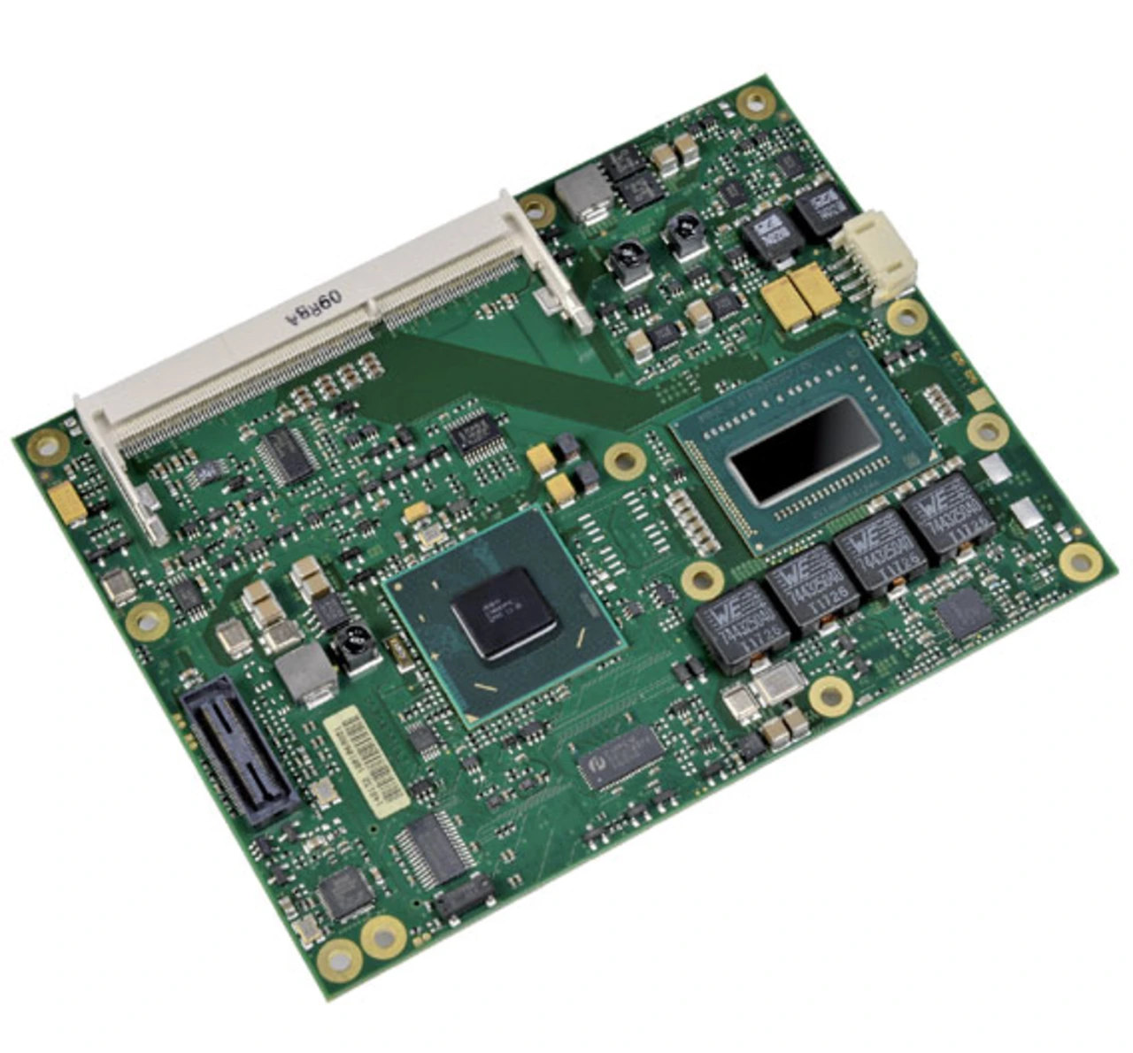 An Schnittstellen verfügen die Module über sieben PCI-Express-×1-Kanäle, ein PCI-Express-Graphics-Interface (PEG), HD Audio und eine Gbit/s-Ethernet-Schnittstelle. Zum Anschluss von Displays sind, neben VGA und LVDS, drei digitale Interfaces mit einer Auflösung von bis zu 2.560 × 1.600 Bildpunkten vorhanden, die wahlweise als DisplayPort oder HDMI/DVI nutzbar sind. Daten können über vier SATA-II-Kanäle auf Festplatte oder einer Solid-State-Disk gespeichert werden. Ein Steckkontakt auf dem Modul für einen geregelten Lüfter sorgt für leise Systeme in geräuschempfindlichen Umgebungen.
