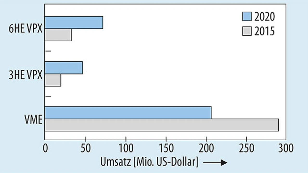 Marktforschungsunternehmen wie IHS prognostizieren, dass VME-Systeme selbst im Jahr 2020 noch mehr als 200 Mio. USD pro Jahr auf Board-Level erwirtschaften werden (Bild 1). Das entspricht einem Absatz von mehr als einer viertel Million Boards, setzt man rund 750 USD pro Board als Durchschnittspreis an. Aber was kann man tun, wenn diskrete Komponenten wie die VME-Bridge TSI148, die beispielsweise noch auf Intel-Core-Duo- und Core-2-Duo-Boards verwendet wurde, nicht mehr produziert werden? Dann muss man neue Lösungen für die kommenden Board-Designs finden. Hier gibt es grundsätzlich drei Möglichkeiten: