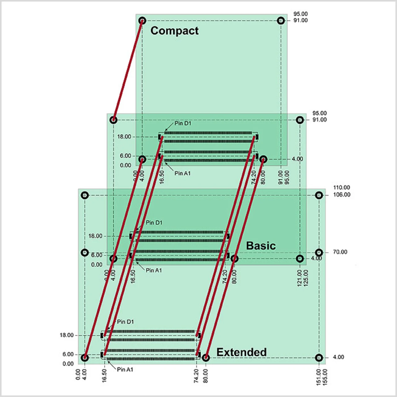 Der am meisten verbreitete Formfaktor ist das »Basic Module« mit 95 mm x 125 mm. Das »Extended Module« mit 155 mm x 110 mm bietet viel Platz für extreme Speichergrößen, wie sie in Serveranwendungen häufig nötig sind. In der Praxis hat sich aber auch noch eine dritte Modulgröße etabliert: Das »Compact Module« ist mit nur 95 mm x 95 mm deutlich leichter zu integrieren und bietet trotzdem genügend Boardfläche für eine gehobene Rechenleistung (Bild 1).