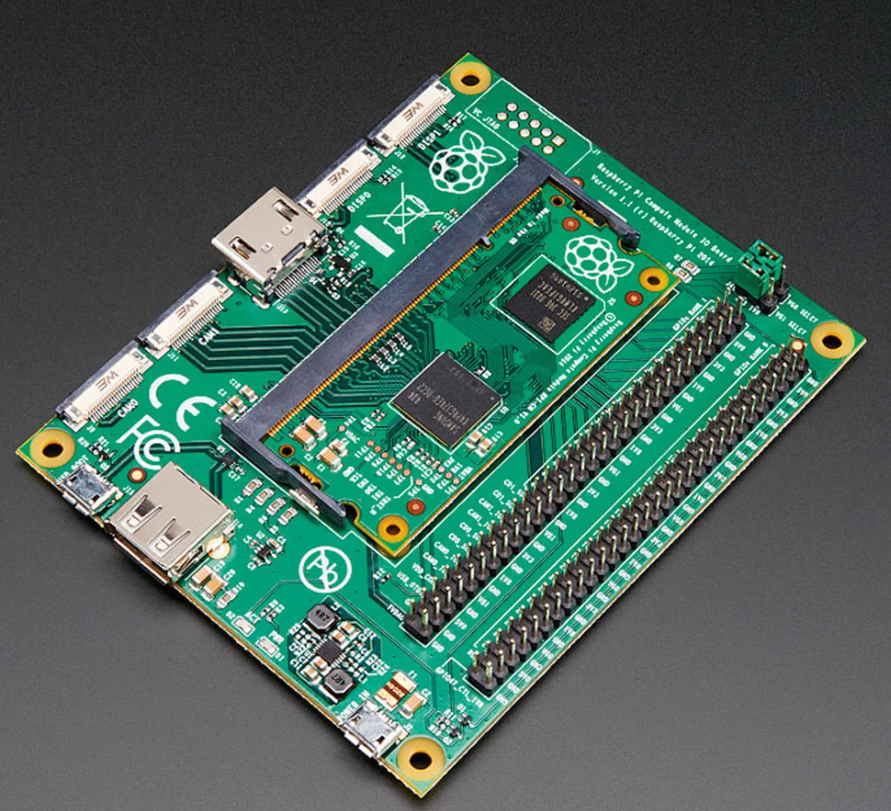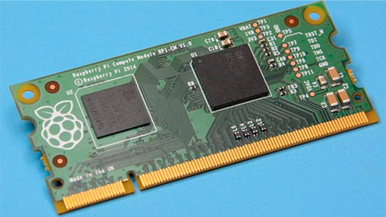 Es verfügt über einen RAM-Speicher von 512 MB und einen 4 GB großen Flash-Speicher in Form eines eMMC-Chips (Embedded Multimedia Card), wie er auch beim BeagleBone Black zum Einsatz kommt. Das Raspberry Pi Compute Modul hat die Form eines DDR2-SO-DIMM-Speichermoduls, wie es bei Notebooks verwendet wird, und verfügt, abgesehen von den Platinensteckkontakten, über keinerlei weitere Anschlüsse.