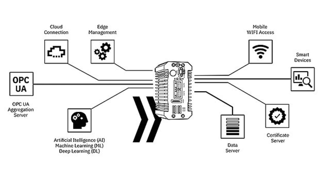 ➔ Schon die Hardware unterstützt die am weitesten in der Produktion verbreiteten OT-Kommunikationsprotokolle, etwa OPC UA, Profinet oder Modbus TCP.