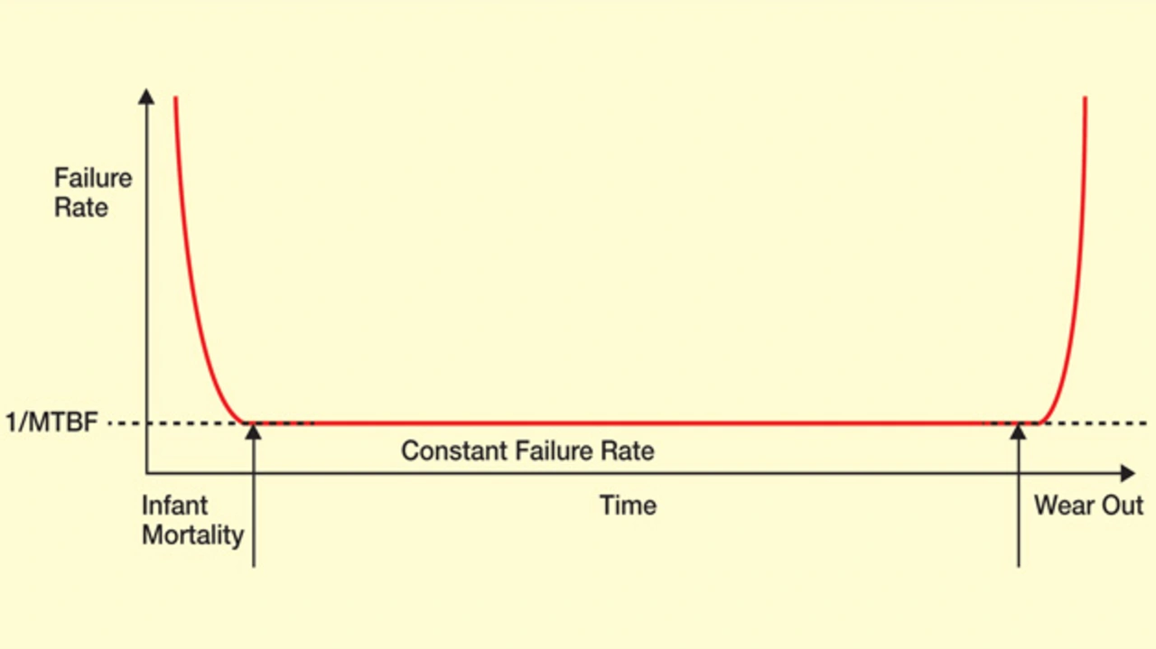 Allerdings sind diese Ausfallraten nur gültig im Bereich des geradlinigen Verlaufs der Badewannenkurve nach Bild 1. Diese Kurve setzt die Frühausfälle (Infant Mortality) bei der Einführung eines Produkts ins Verhältnis mit den Ausfällen während der normalen Lebensdauer (Constant Failure Rate) und den Ausfällen zum Ende der vorgesehenen Lebenszeit (Wear Out). Um Frühausfälle auszuschließen, nutzen Hersteller eine Burn-in-Prozedur während der Produktion. Die dabei applizierten Temperaturzyklen beschleunigen die Ausfälle durch latente Defekte vor der Auslieferung und der Systemintegration.
