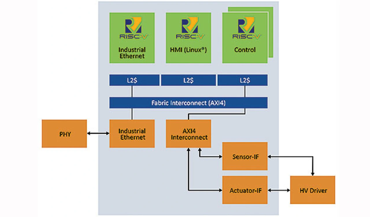 Bild 6 zeigt ein generisches Blockdiagramm einer SPS, die mit PolarFire SoCs mit Quad-Core-RISC-V-Prozessor arbeitet. Das SoC unterstützt asymmetrisches Multiprocessing (AMP) zusammen mit einer festen, feingranularen Zuordnung von Cacheways zu einzelnen Prozessoren. Hiermit ist echtes Multitasking möglich. So kann zum Beispiel ein einzelner Prozessorkern für einen industriellen Ethernet-Protokollstapel zugewiesen werden, während ein zweiter Kern ein Linux-Betriebssystem ausführt. Der entsprechende Cache wird fest zugewiesen und Linux von anderen Hardware-Ressourcen getrennt. Außerdem können Entwickler die anderen beiden verfügbaren Kerne verwenden, um die erforderlichen Algorithmen für die Motorsteuerung oder einen Umrichter zu verarbeiten. Eine geringe Leistungsaufnahme ist hier ebenfalls gefragt, um die Temperatur der elektronischen Komponenten im Inneren der Blade-Module niedrig zu halten. Und das, selbst in anspruchsvollen thermischen Umgebungen von 60 °C und mehr. Einen tieferen Einblick, warum eine geringe Leistungsaufnahme auch in kabelgebundenen Systemen wichtig ist, gibt ein Fachartikel [1].