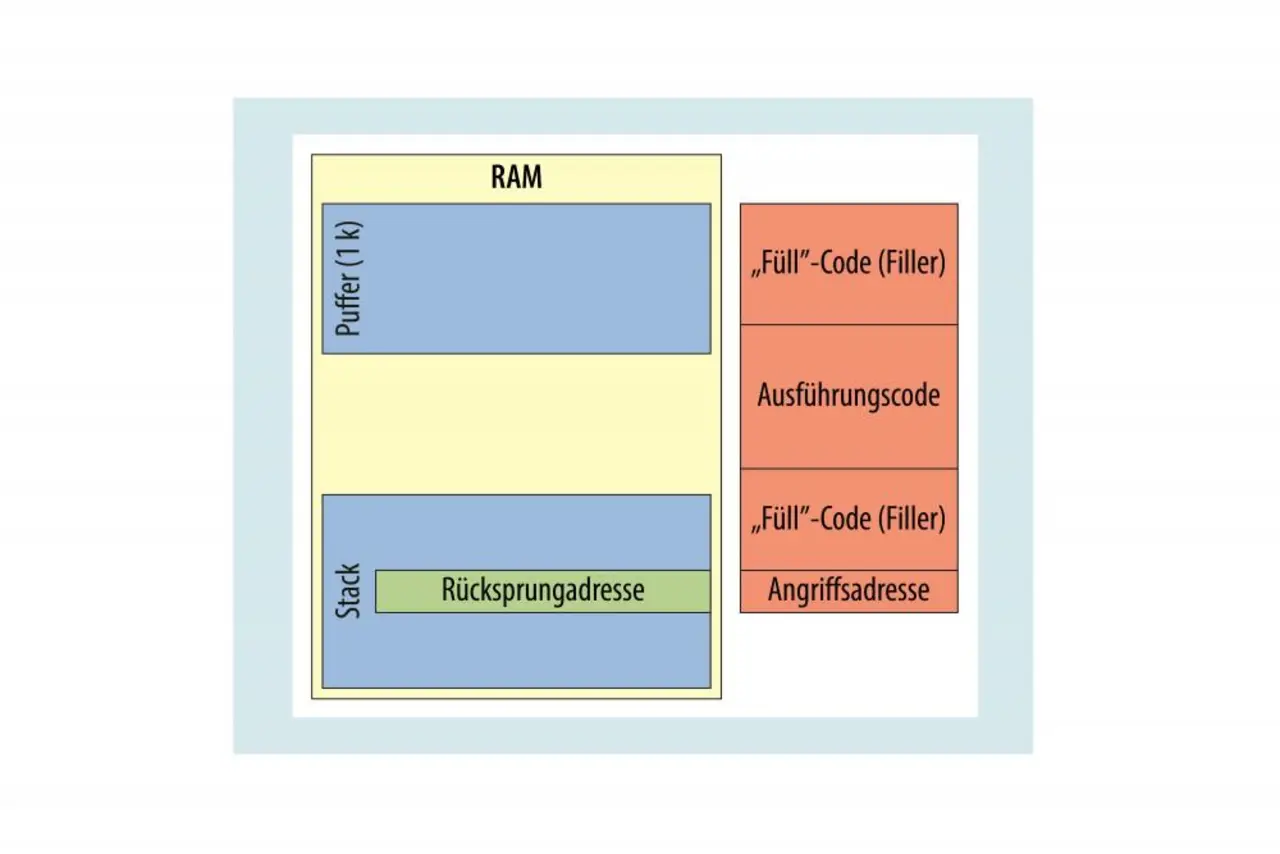 Die erste Angriffsart versucht, den Speicher mithilfe einer vorhandenen Schnittstelle zu manipulieren, deren Eingaben auf unerwartete Weise nicht korrekt überprüft werden. Der bekannteste Angriff der Art ist ein Pufferüberlauf (Bild 2). Beim Pufferüberlauf sendet ein Angreifer mehr Daten als erwartet an eine Schnittstelle, wodurch der Anwendungscode oder die Daten mit ihren eigenen Werten überschrieben werden. Die Art des Angriffs kann Anwendungscode auf ungewollte Weise aktivieren. Zum Beispiel um einen Befehl zu erhalten, der eine Variable abrufen soll, um stattdessen Konfigurationsinformationen abzurufen. Im schlimmsten Fall kann er verwendet werden, um Code in den Speicher zu injizieren und die CPU dann dazu bringen, zu dem Code zu springen. Dann kann der Angreifer einen beliebigen Code ausführen und die vollständige Kontrolle über die Hardware erlangen.