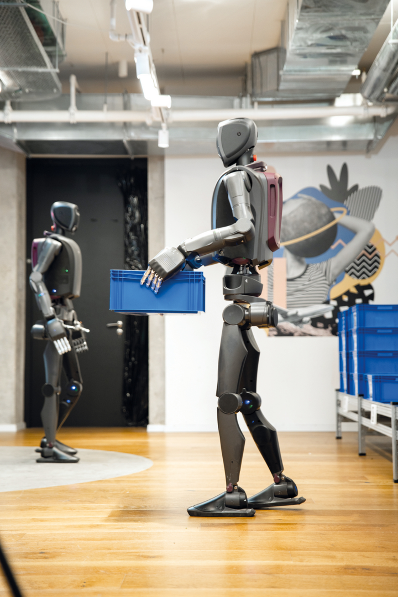 Humanoide Roboter von Mentee Robotics in der Intralogistik.