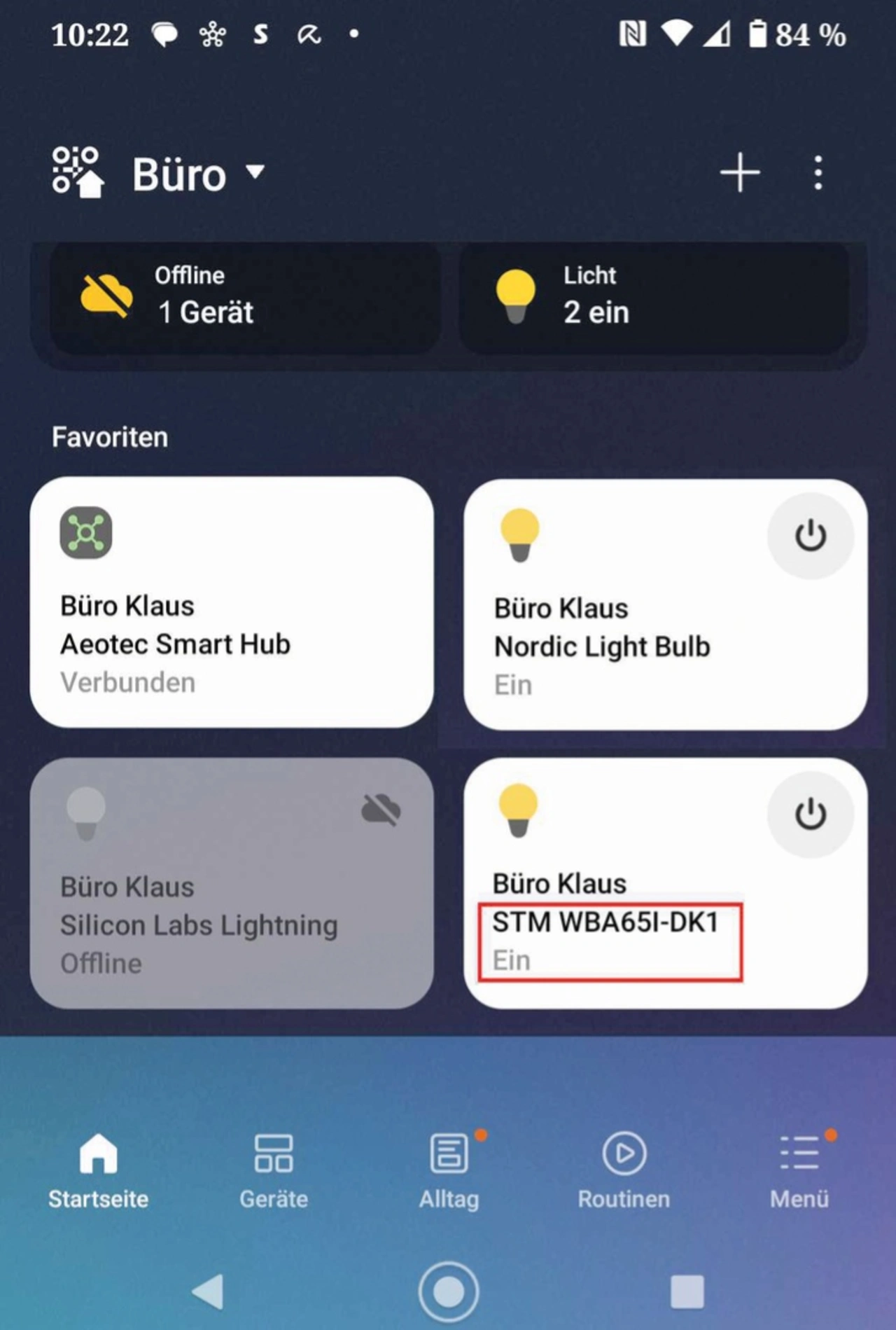 Wichtig für ein Matter-Device ist der dazugehörige QR-Code, mit dem die Integration in ein Matter-Netzwerk initiiert wird. Er ist über einen – etwas versteckten – Link auf der »Matter Develop and Prototype Site« [5] zu finden [6]. Auch wenn dort zu lesen ist »Please scan with your CHIPTool app«, ist das der richtige QR-Code für das mit der Lightning-Firmware programmierte STM32WBA65I-Board, der von allen Matter-Implementierungen, wie beispielsweise SmartThings von Samsung, akzeptiert wird. Das STM32WBA65I mit der programmierten Lightning-Firmware wird daraufhin ohne jegliche Fehlermeldung im Matter-Netzwerk aufgenommen (Bild 9).