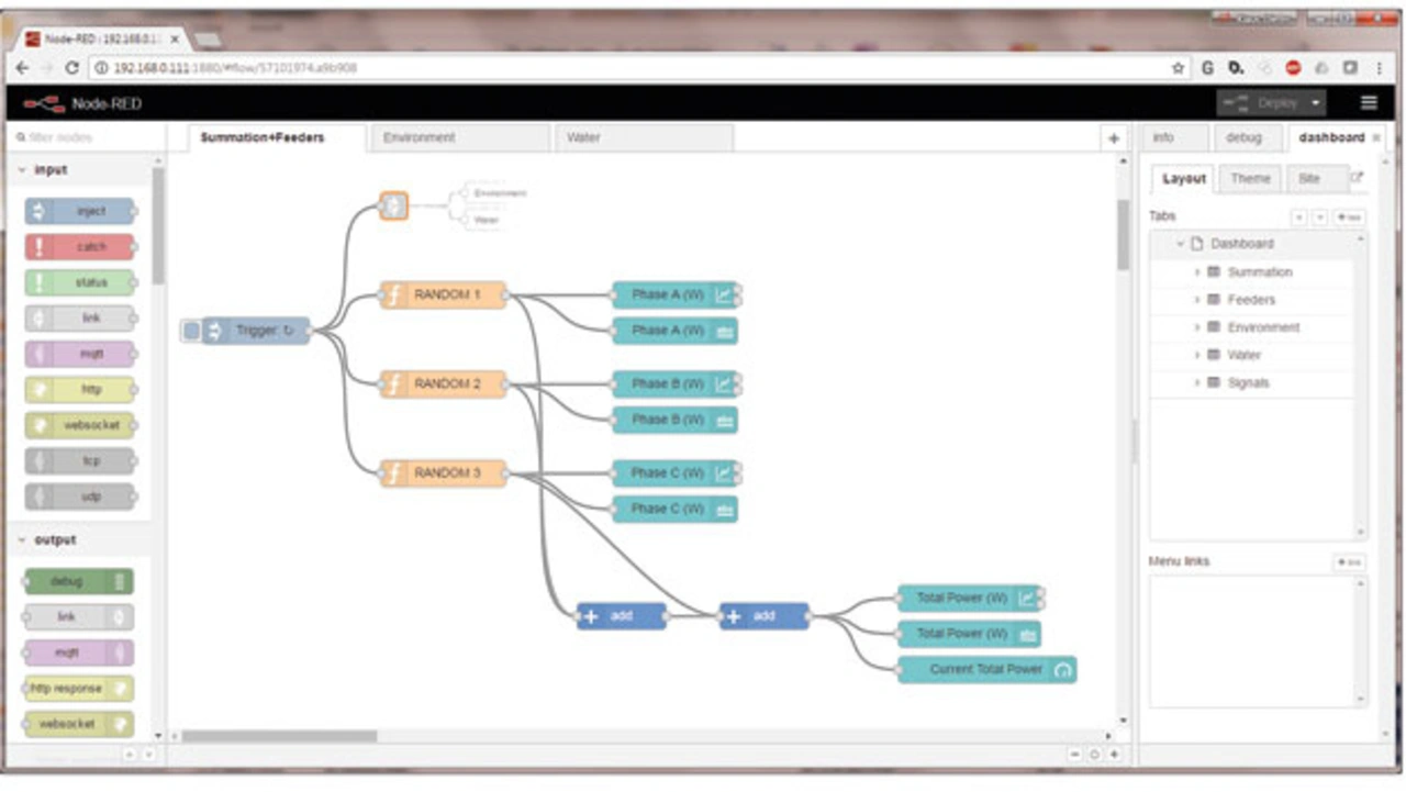 Wichtig ist dabei die Flexibilität der Kommunikationsschnittstelle: Es lässt sich nicht sicher vorhersagen, welche Technologien 80 % der Kunden während eines Sensor-Produktlebenszyklus nutzen werden. Um diese Anforderungen zu erfüllen, kann das Embedded-System im Sensor z.B. das ereignisgesteuerte Node-RED als „Connectivity Engine“ nutzen (Bild 2). Diese plattformunabhängige Open Source Software wird über einen webbasierten Verbindungseditor nach Datenflussregeln konfiguriert. Neue Schnittstellen und Protokolle lassen sich wie eine App importieren. Sogar Sensordatenfusionen und einfache Web-Nutzerschnittstellen zur Datenvisualisierung werden unterstützt (Bild 3).