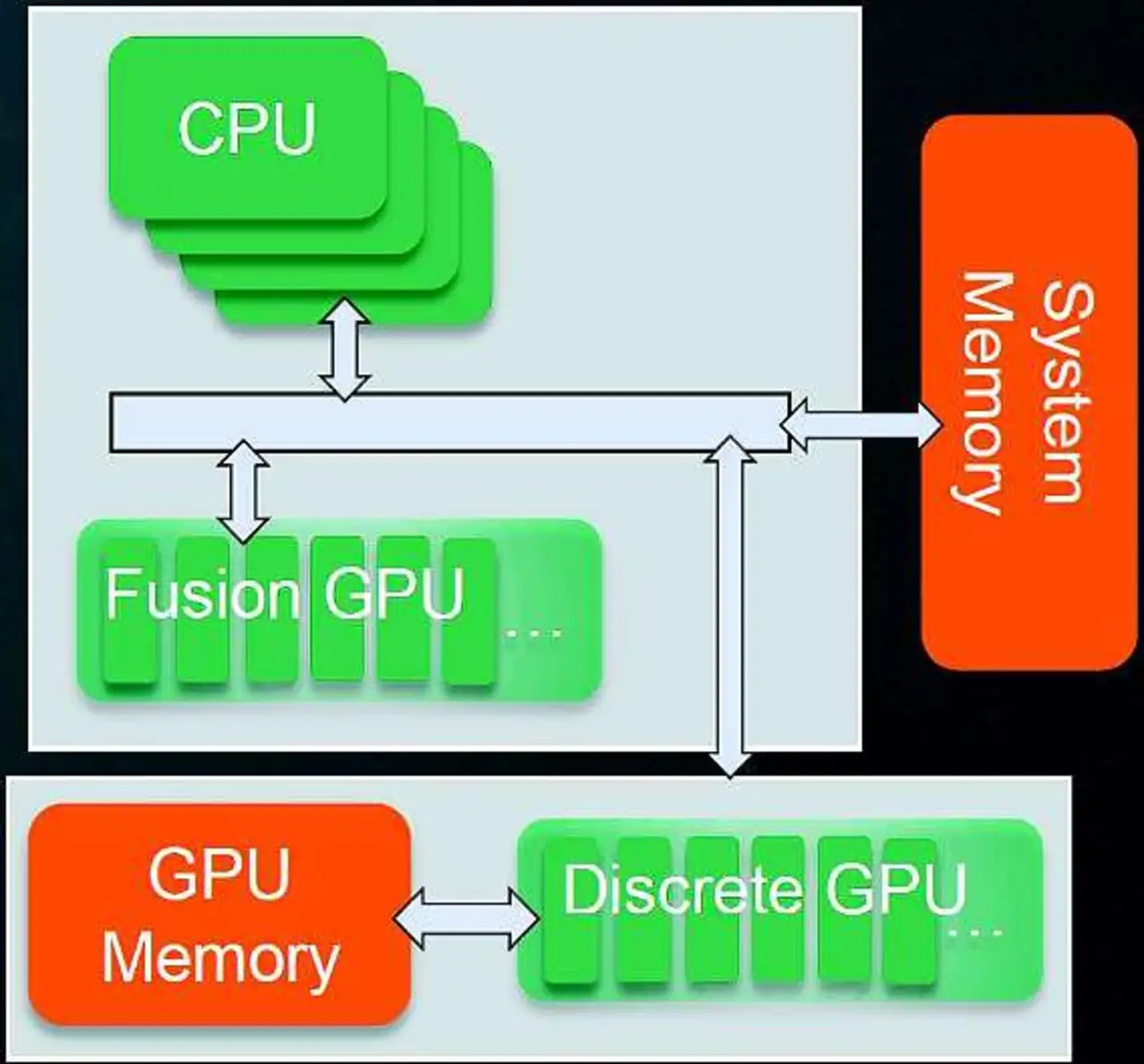Das bedeutet, dass auch die bisher vorhandene softwaretechnische Aufgabenteilung von Prozessor und Grafikeinheit verschmilzt. Einfach ausgedrückt kann die Grafikeinheit die Prozessor-Cores bei parallelen Aufgaben entlasten und somit die Gesamtperformance des Systems weit über das bisher Mögliche erhöhen.