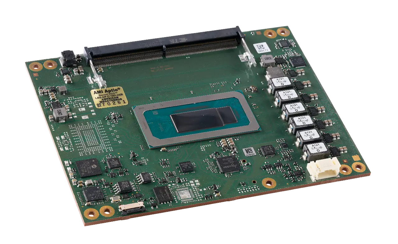 Die in den Standardmodulen eingesetzten Core-Prozessoren der 12. und 13. Generation integrieren Intels »Performance-Hybrid-Architecture«, die Performance und Efficient Cores kombiniert. Zudem optimiert Intels »Threat-Director« die Arbeitslast der einzelnen Cores. Die Architektur verfügt über insgesamt bis zu 14 Cores und 20 Threads; Intels integrierte »Iris Xe«-Grafik mit bis zu 96 Execution-Units (EUs) gewährleistet eine hohe Grafikleistung. Zudem unterstützen die EUs KI-Applikationen, die unter anderem in leistungsfähigen Bilderkennungs- und Bildverarbeitungssystemen zum Einsatz kommen.