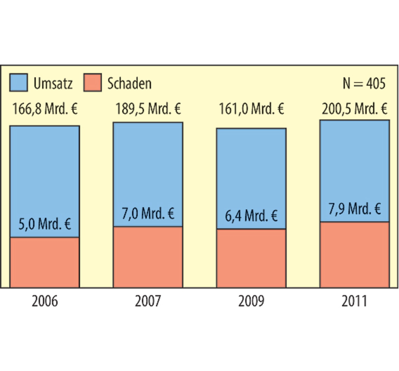 Laut den Ergebnissen der VDMA-Umfrage vom 23.4.2012 sind neun von zehn Unternehmen von Produktpiraterie betroffen; 48 % der Hersteller leiden unter dem Nachbau kompletter Maschinen. Insgesamt rechnet die Umfrage von einen Umsatzausfall von 7,9 Mrd. Euro im Jahr 2012 (Bild 1). 28 % der Befragten gaben an, technische Schutzlösungen einsetzen zu wollen. Wenn es gelänge, die Produktpiraterie zu reduzieren, könnten im deutschen Maschinen und Anlagenbau zusätzlich 37.000 Arbeitsplätze geschaffen werden.