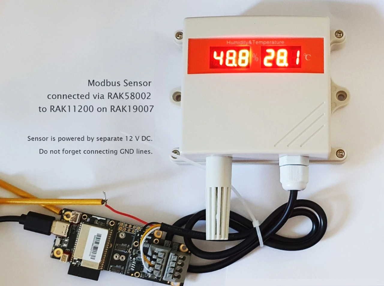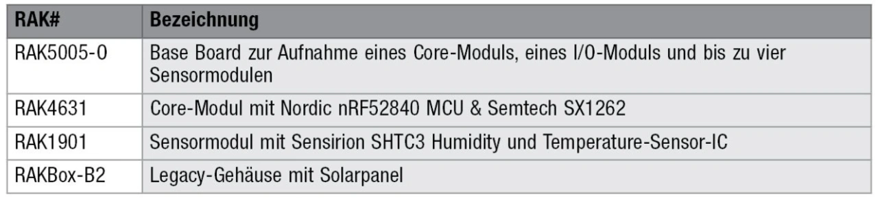 Über Aliexpress [6] findet sich ein geeigneter Modbus-Sensor und viele vergleichbare Geräte zur Temperatur- und Feuchtigkeitsmessung zu einem sehr günstigen Preis. Der Sensor verwendet einen »SHTC3«-Sensor von Sensirion, der präzise Ergebnisse erwarten lässt. Der Nachteil der Wahl ist die einfache, auf Chinesisch verfasste Dokumentation. Google Translator oder ähnliche Tools helfen, den hier verwendeten Teil des Modbus-Protokolls zu entmystifizieren. WisBlock bietet alle nötigen Komponenten für den Bau des Geräts.