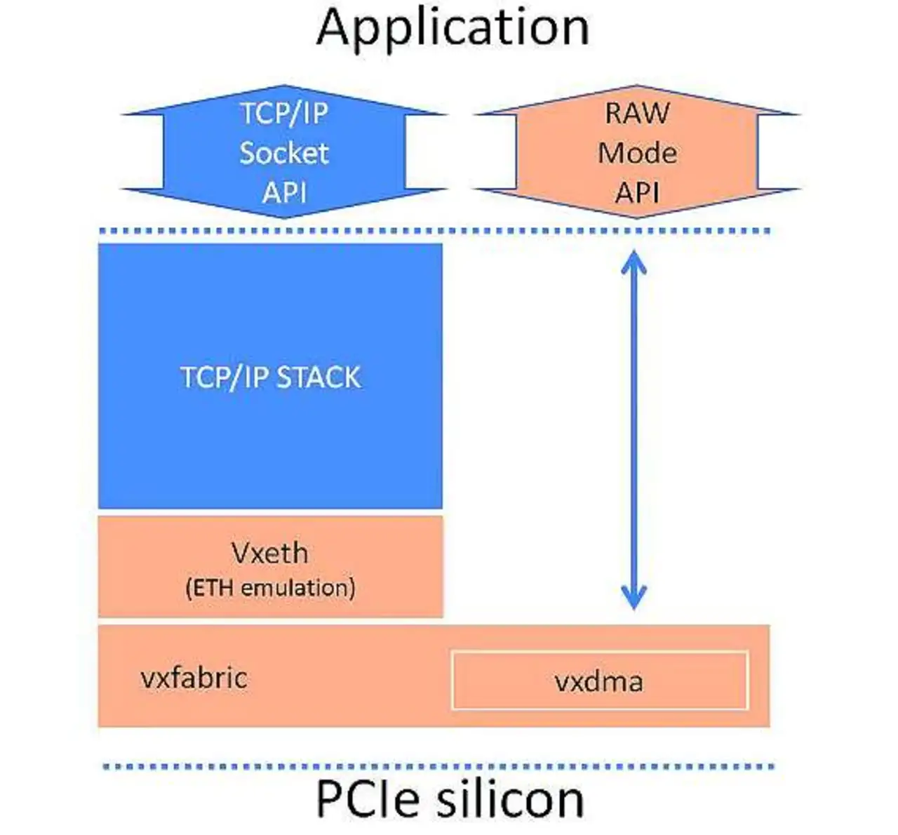 Das Standard-Programmiermodell für Anwender basiert auf dem IP-Protokoll und beinhaltet ein Socket-Layer-API mittels Emulation eines Ethernet-Interfaces über PCIe - vergleichbar mit Pseudo-Ethernet in virtuellen Maschinen. Durch dieses API bleiben bestehende Applikationen mit der VXFabric kompatibel, zudem verhindert die Migration von einer GBit-Ethernet-TCP/IP-Infrastruktur zur Lösung auf VXFabric-Basis laut Kontron, dass sich Anwender mit leistungsarmen, proprietären APIs auseinander setzen müssen, wie sie beispielsweise die meisten Serial-Rapid-IO- oder Infiniband-Implementierungen nach Meinung der Autoren darstellen. Die VXFabric ist auf allen VPX-CPU-Boards von Kontron verfügbar, unterstützt Linux und wurde so entwickelt, dass sie auch auf andere OS portierbar ist.