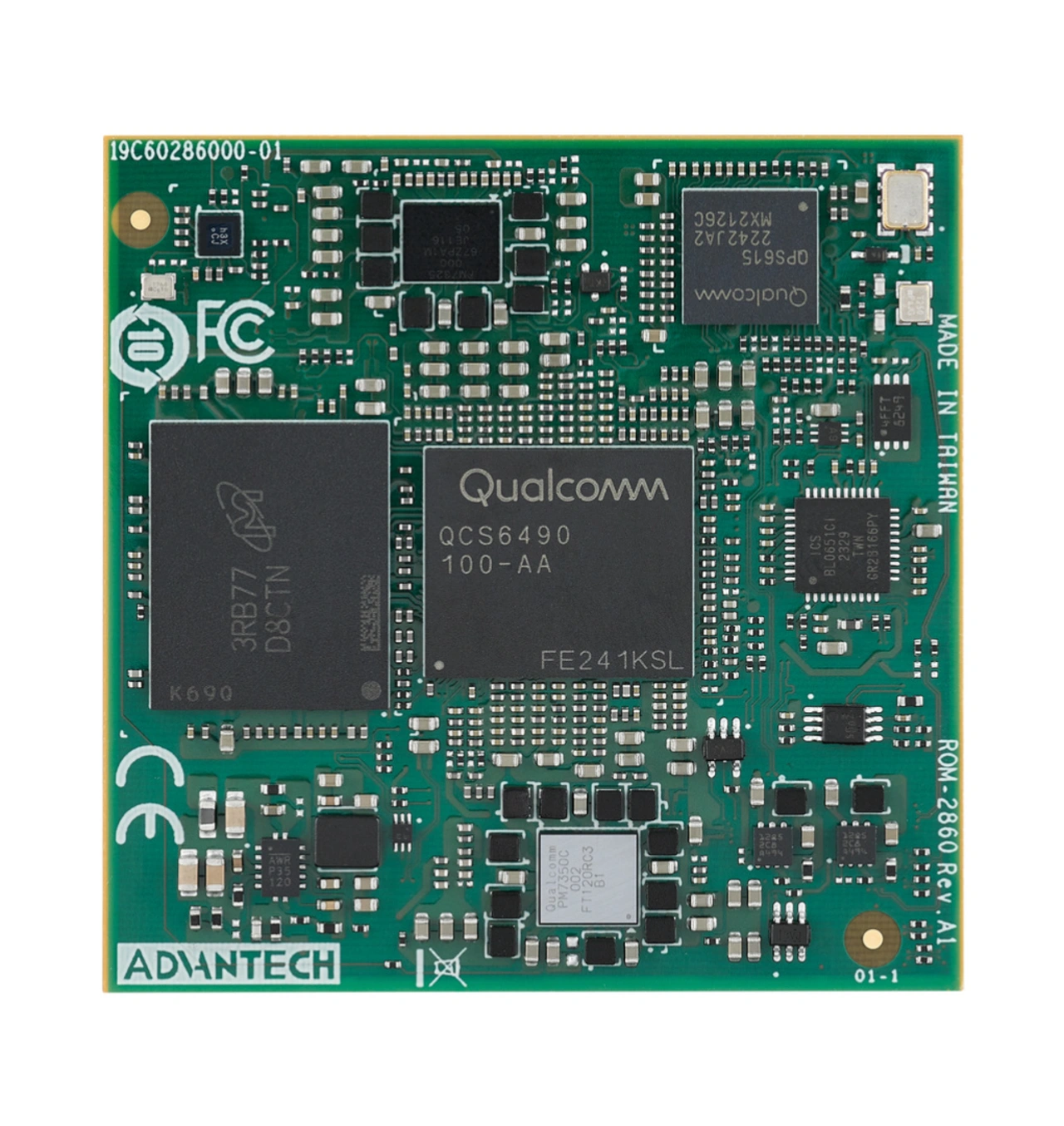 Flaggschiff der OSM-Module ist das ROM-2860 (Bild 4) im »L«-Formfaktor (45 x 45 mm²), das mit dem Achtkern-Prozessor »QCS6490« von Qualcomm ausgerüstet ist, der folgende Elemente enthält: Eine Qualcomm »Kryo 670« CPU mit Cortex-v8-Technologie-Kernen (1x Gold plus mit bis zu 2,7 GHz, 3x Gold mit bis zu 2,4 GHz und 4x Silver mit 1,9 GHz), jeweils eine Adreno Virtual Processing Unit (VPU) und Graphics Processing Unit (GPU) sowie einen Hexagon-KI-Beschleuniger mit bis zu 13 TOPS. Das Onboard-RAM besteht aus 8 GB in ebenso schneller wie stromsparender LPDDR5-8533-Technologie. Onboard-Schnittstellen sind: