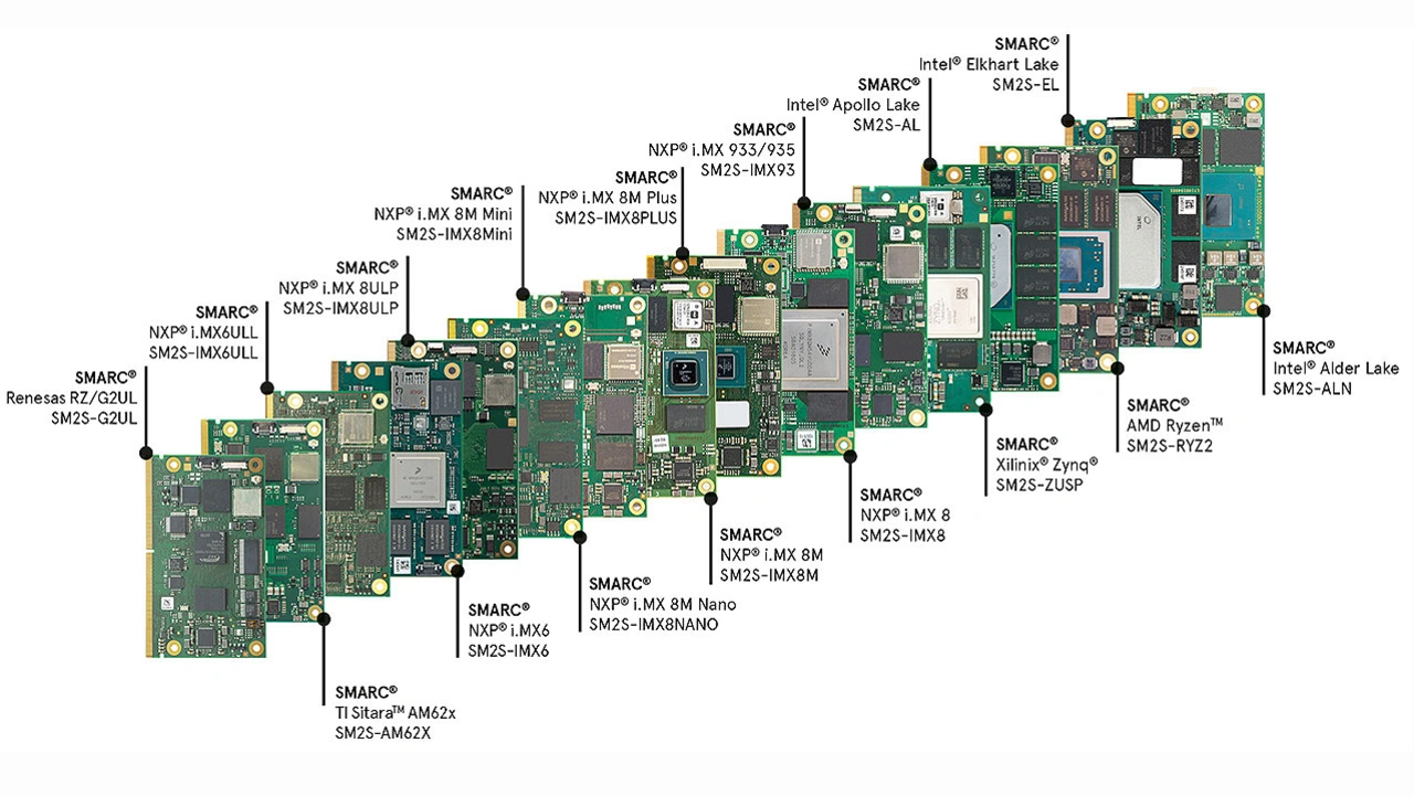 In den vergangenen Jahren hat sich der kompakte Modulstandard SMARC (Smart Mobility ARChitecture) als idealer Formfaktor für leistungsfähige Embedded-Module durchgesetzt. SMARC wird von der Standardization Group for embedded Technologies (SGeT) gehostet und ist besonders für Anwendungen optimiert, bei denen es auf Kompaktheit und Energieeffi- zienz ankommt. Die Spezifikation definiert die beiden Modulgrößen 82 mm x 50 mm (Short Size) und 82 mm x 80 mm (Full Size), wobei sich vor allem der kleine Formfaktor am Markt durchgesetzt hat.