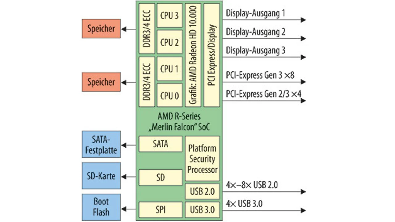 Mit dem Launch der ersten SoC-Variante der AMD-Embedded-R-Series-Prozessoren sind diese leistungsfähigen Desktop-Prozessoren nun auch für Embedded-Applikationen verfügbar. Dank der skalierbaren Verlustleistung ab 12 Watt können sie erstmals sogar in komplett geschlossenen, lüfterlosen Systemen zum Einsatz kommen.