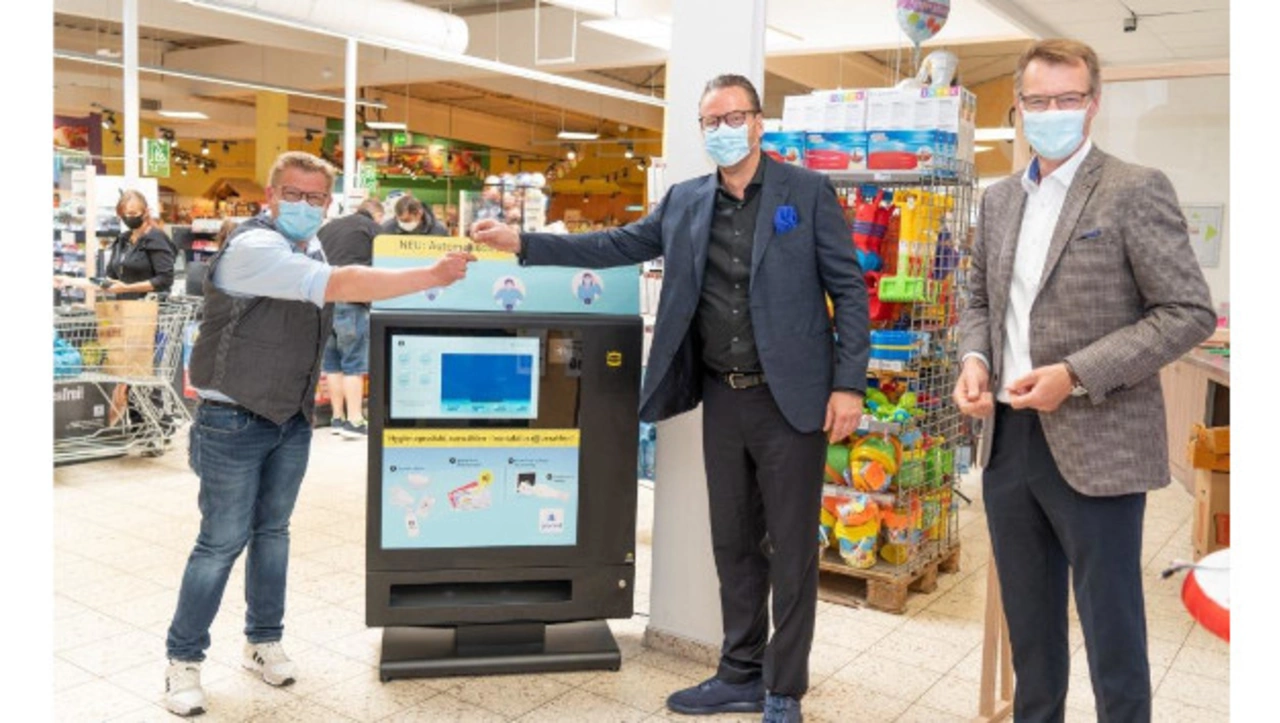 Die Versorgung mit Utensilien zum Schutz vor Corona ist wichtiger denn je. Harting hat deshalb einen Automaten entwickelt, der Hygieneartikel per Knopfdruck zur Verfügung stellt. Der erste Automat steht ab sofort in einem E-Center in Nordrhein-Westfalen.