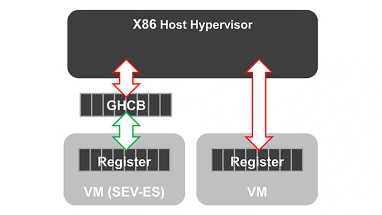 Mit SEV-Encrypted-State (SEV-ES) wurde die Sicherheit der Embedded-7002-Serie zusätzlich erweitert. So ist das Verschlüsseln aller CPU-Registerinhalte möglich, wenn ein Anwender eine VM schließt. Das verhindert einen Informationsabfluss der CPU-Register auf andere Software-Komponenten, wie den Hypervisor (Bild 3). SEV-ES erkennt sogar böswillige Änderungen an den CPU-Registern. Anders als das sichere Verschlüsseln über Secure-Memory-Encryption (SME), erfordern die VM-Sicherheitsfunktionen SEV und SEV-ES allerdings das Aktivieren im Gastbetriebssystem und Hypervisor. Ein Ändern oder Neu-Kompilieren von Code der eigentlichen Anwendung sind jedoch nicht erforderlich. Läuft eine Kundenanwendung auf einem System mit aktiviertem SEV, kann sie die Vorteile der Sicherheitsfunktionen somit vollumfänglich nutzen.