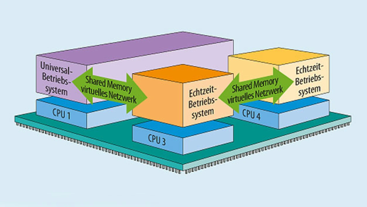 Die Echtzeitkommunikation zwischen den einzelnen virtuellen Maschinen erfolgt über ein virtuelles Netzwerk, das vom RTS Hypervisor bereitgestellt wird, oder für geringste Latenzen durch Shared Memory. Für diesen gemeinsamen Speicherbereich lassen sich auch individuelle Schreib- und Leserechte vergeben, sodass nur berechtigte Betriebssystem-Partitionen Zugriff erhalten, was die Sicherheit erhöht.