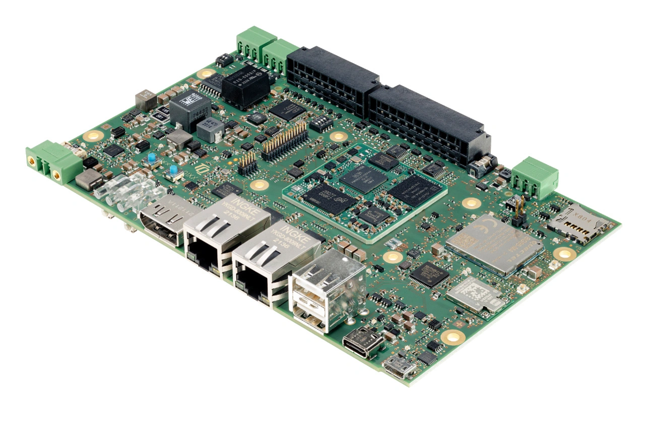 Angepasst an die zahlreichen Einsatzmöglichkeiten der TQMa93xx-Module entwickelte TQ parallel zu den Modulen auch zwei passende Mainboards. Das 170 mm x 170 mm große Design »MBa9xxxCA« dient zu Evaluierung beider Modultypen.