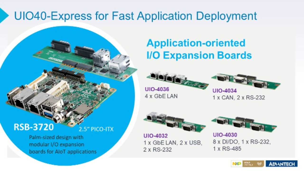 Zudem bietet der RSB-3720 eine UIO40-Express-Schnittstelle für den Anschluss anwendungsspezifischer Erweiterungskarten. Entwickler können diese einfach für weitere serielle Anschlüsse (RS-232, RS-485), isolierte DI/DOs, USB 2.0 oder einen GbE-Hub mit vier Ports auswählen.