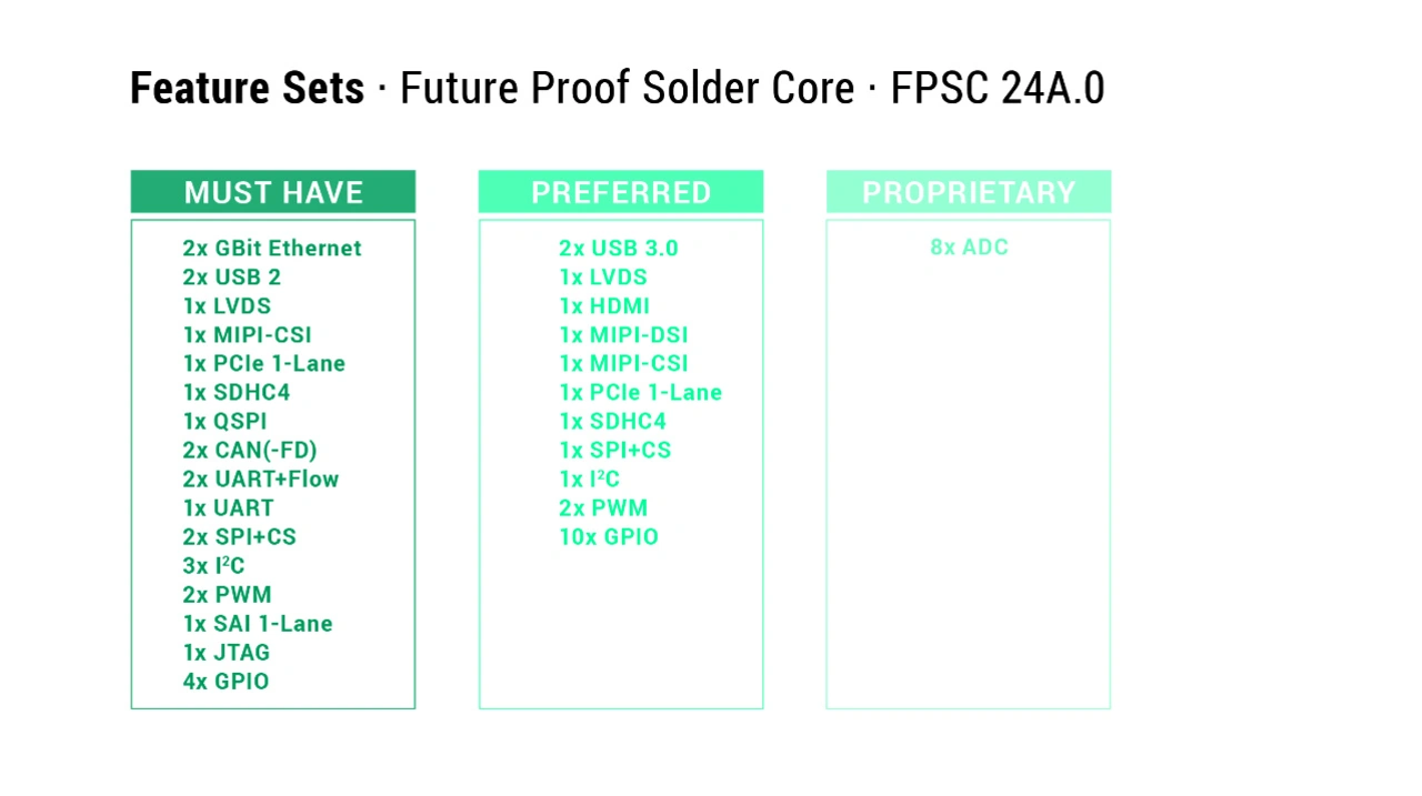 Das Feature-Set findet sich auf den System-on-Modules (SoMs) in Form eines besonderen Pinouts wieder, das in drei Zonen eingeteilt ist: