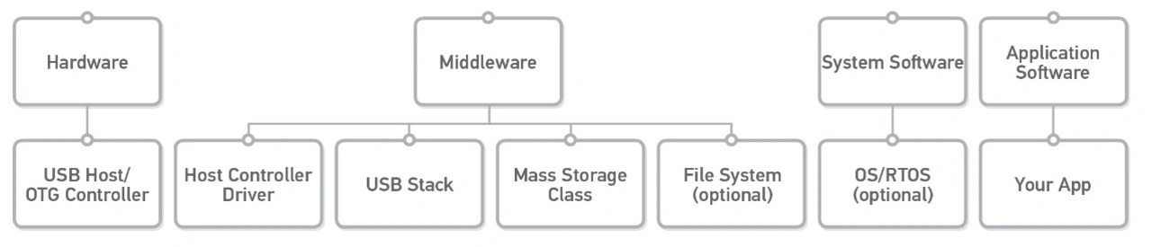 Möchte ein Entwickler ein Embedded-System von Grund auf neu entwickeln und das USB-Protokoll nutzen, bietet der Markt viele leistungsstarke, energiesparende und kostengünstige Mikrosysteme mit 8-, 16- und 32-bit-Architekturen, die über integrierte USB-Hosts verfügen. Alternativ kann ein dedizierter USB-Host-Controller zum Einsatz kommen, der im Allgemeinen in eine von drei Kategorien fällt. In der Regel hängt die Wahl davon ab, ob das System über genügend Ressourcen verfügt, um ein (Echtzeit)-Betriebssystem und bei Bedarf Middleware zu unterstützen.