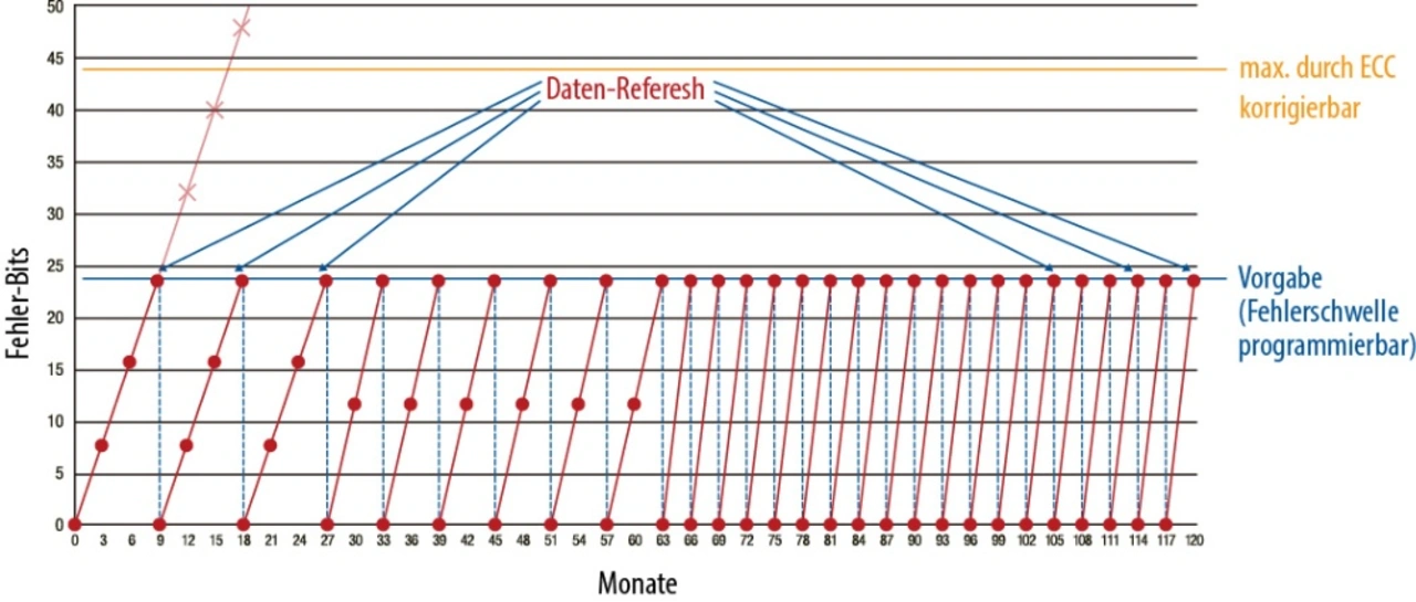 Mit zunehmender Dichte sinkt die Zuverlässigkeit von Flash-Speichern. Doch Industrie-Anwendungen tolerieren keine Ausfälle. Eine neue SSD ist mit mehreren Mechanismen ausgerüstet, die die Sicherheit der Datenhaltung und Zuverlässigkeit im Betrieb verbessern.