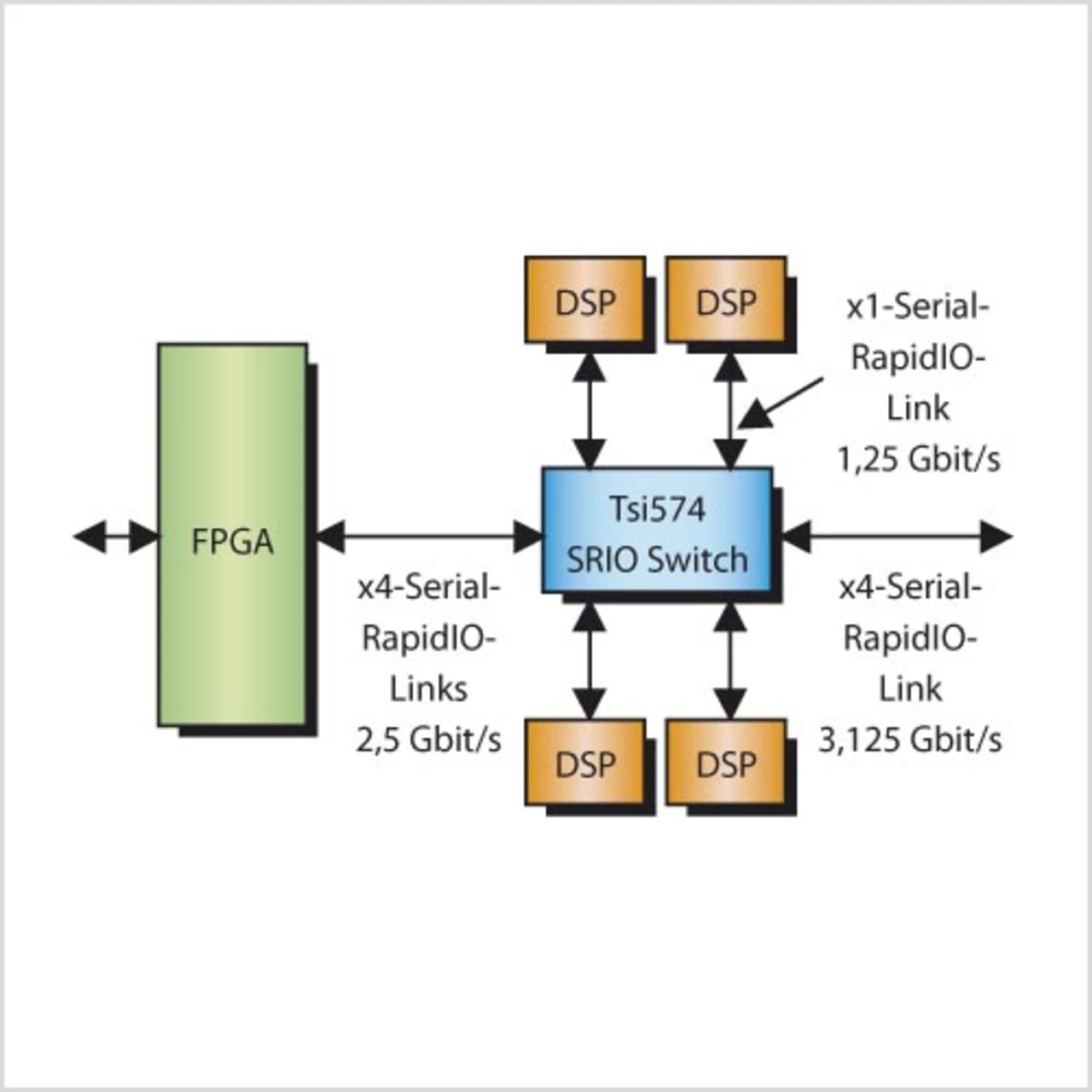 Wie in Bild 3 gezeigt, durchläuft das Signal auf dem Weg zum FPGA verschiedene Bereiche der Leiterplatte und wird unter Umständen durch elektromagnetische Störungen beeinflusst, da es möglicherweise verschiedene Layer durchlaufen muss. Für die Verbindungen zwischen den DSPs und dem Switch sind hingegen geringere Geschwindigkeiten erforderlich, da die Signale nur sehr kurze Distanzen zu überbrücken haben. Für die Verbindung zur Backplane ist unter Umständen auch eine höhere Geschwindigkeit erforderlich, da das Signal auch hier eventuell eine Vielzahl von Steckerverbindern durchlaufen muss.