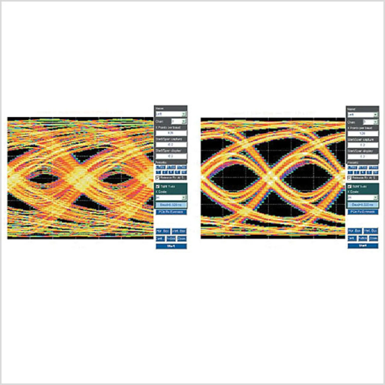 Die Silizium-Lieferanten erleichtern sich das Leben, indem sie „Ball-Maps“ wählen, die für kurze Verbindungen zwischen Silizium-Chip (Die) und Lotperle sorgen. Die Aufgabe des Leiterplattenentwicklers ist alles andere als trivial. Für das Layout der Ball-Map ist die Umsetzung der gesamten Systemebene zu berücksichtigen. Hierfür muss beispielsweise auch die Verbindung der peripheren ICs zum Switch beachtet werden. Diese sollte optimiert werden, um die Anzahl der Layer und den auf der Platine erforderlichen Platz zu minimieren, um somit eine Verbesserung der Signalintegrität für das endgültige Layout zu erreichen. Bei ICs mit sehr dichten Ball-Maps sind viele Layer auf der Platine erforderlich, um die Signale vom IC weg zu leiten, was zu hohen Entwicklungskosten führt. Weitere Punkte, die sich auf die Wechselbeziehung von Crosstalk zwischen Signalweg und effizienten Ball-Maps auswirken, sind die Anzahl sowie die Anordnung von Spannungs- und Masseanschlüssen. Wird ein kleines Gehäuse mit zu vielen Serial-RapidIO-Ports ausgestattet, ergeben sich möglicherweise Probleme hinsichtlich der Signalintegrität aufgrund von Crosstalk. Dies hat zur Folge, dass das Auge geschlossen ist, wenn das vom Switch kommende Signal schließlich den Endpunkt erreicht.