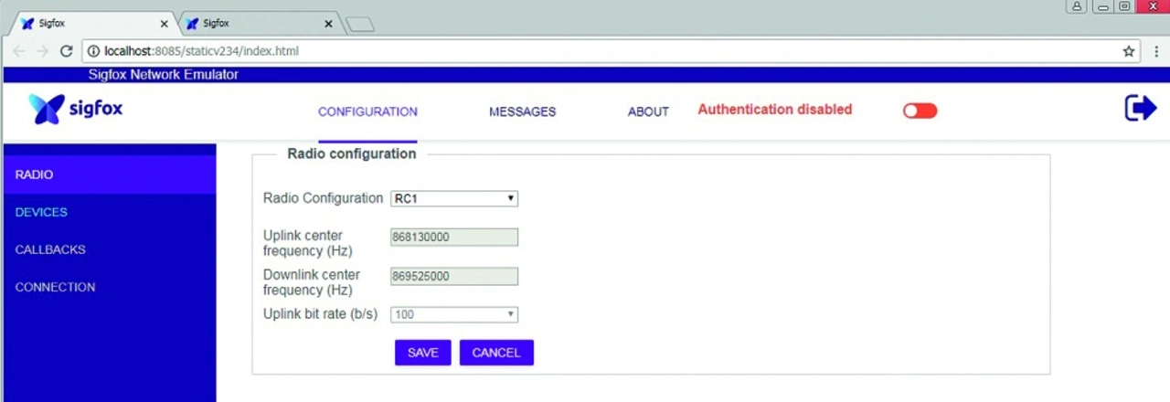 Nach den Angaben zur Radio Configuration (RC2, Gerät Identifier) ist eine Callback Configuration in der Emulator-Software möglich. Was hier genau einzutragen ist, wird aus dem User Guide zum SNE leider nicht deutlich, hier wäre ein Beispiel sehr hilfreich. Die Kommunikation über Callbacks findet zwischen der Sigfox-Cloud und einem Endgerät (zum Beispiel Smartphone) im Push-Mode statt, das heißt, sobald neue Nachrichten – etwa von einem Sigfox-Sensor – in der Cloud eintreffen, wird die Übertragung automatisch ausgelöst. Alternativ lassen sich die Daten natürlich auch per Browser im Webportal einsehen oder über das API, was jedoch im Pull-Mode stattfindet, also erst auf Anforderung hin passiert und demnach laufende Abfragezyklen erfordert. Die Callback-Funktion wird meist als Bestandteil einer komplexen IoT Cloud-Lösung von ausgewiesenen Sigfox-Partnern [2] oder auch den typischen Cloud-Betreibern wie Microsoft (Azure) oder Amazon (AWS) angeboten, was für einen einfachen Test einer Sigfox-Übertragung überdimensioniert wirkt.