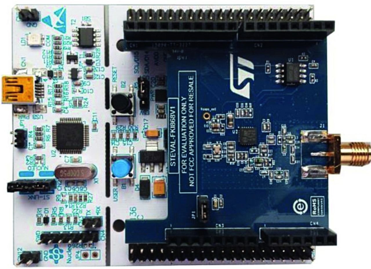 Das Development Kit von STMicroelektronics besteht aus einem STM32-Nucleo-Board mit arduino-kompatiblen Buchsenleisten, auf die eine Funkplatine mit dem S2-LP-Transceiver (S2LP8627) aufgesteckt ist. Dazu wird noch eine passende Antenne geliefert, sonst nichts weiter. Sowohl das Nucleo-Board als auch der kostengünstige Transceiver (ca. 3 €) werden bereits vielfach für verschiedene Funkanwendungen eingesetzt, genauso wie das Development Kit. Es ist also nicht spezifisch für Sigfox entwickelt worden.