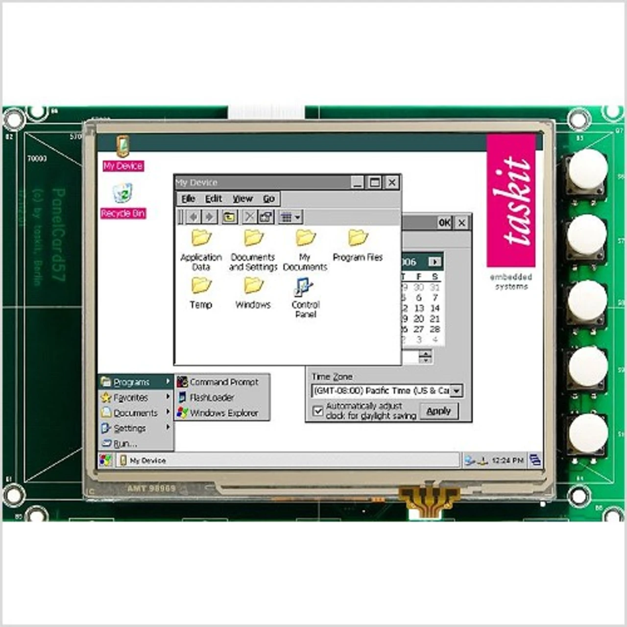Gleich doppelte Verstärkung für seine »Panel-Card«-Produktfamilie hat die Firma taskit angekündigt. Die beiden neuen ARM9-CPU-Module »Panel-Card 57« und »Panel-Card 70« zeichnen sich unter anderem durch das integrierte TFT-Display aus. CPU-Modul und Display sind fast gleich groß und im Sandwichformat miteinander verbunden. Neben dem 3,5-Zoll-TFT-Display stehen damit auch Versionen mit 5,7- und 7-Zoll-TFT-Display zur Verfügung. Über die fünf Tasten und das Touchscreen sind die Panel-Cards beispielsweise als Anzeige- und Bedieneinheit einsetzbar. Die Panel-Cards wurden auf Basis des Microcontrollers Atmel AT91SAM9261 entwickelt. Der Strom sparende ARM926EJ-S-Prozessor arbeitet mit 200 MHz, und durch seine geringe Leistungsaufnahme eignet er sich auch für mobile Geräte. Der Anschluss der Panel-Cards erfolgt über zwei 40-polige Buchsenleisten, auf der eigene Implementierungen realisiert werden können.