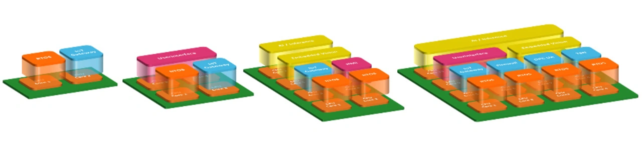 Je mehr automatisiert, vernetzt und digitalisiert wird, desto mehr Aufgaben kommen auf die Embedded-Systeme in Geräten, Maschinen und Cobots zu. Bislang geschlossen betriebene Embedded-Systeme entwickeln sich zum Gateway und zur zentralen Kommunikationsinstanz ihrer »Wirte« und müssen nicht mehr lediglich die eigentlichen Anwendungen steuern. Sie sind zunehmend interaktiv und vielschichtig und können beispielsweise zugeführte Werkstücke automatisch annehmen und verarbeiten – außerdem arbeiten sie mit Menschen zusammen. Sie erkennen Gegenstände um sich herum und analysieren verschiedene Dinge. Zusätzlich kommunizieren, berichten und optimieren sich heutige Embedded-Systeme konstant – vorab simuliert am digitalen Zwilling. Sie erhalten weiterhin Funktions-Updates und Sicherheits-Patches und bitten um Wartung – all das aus der Ferne.